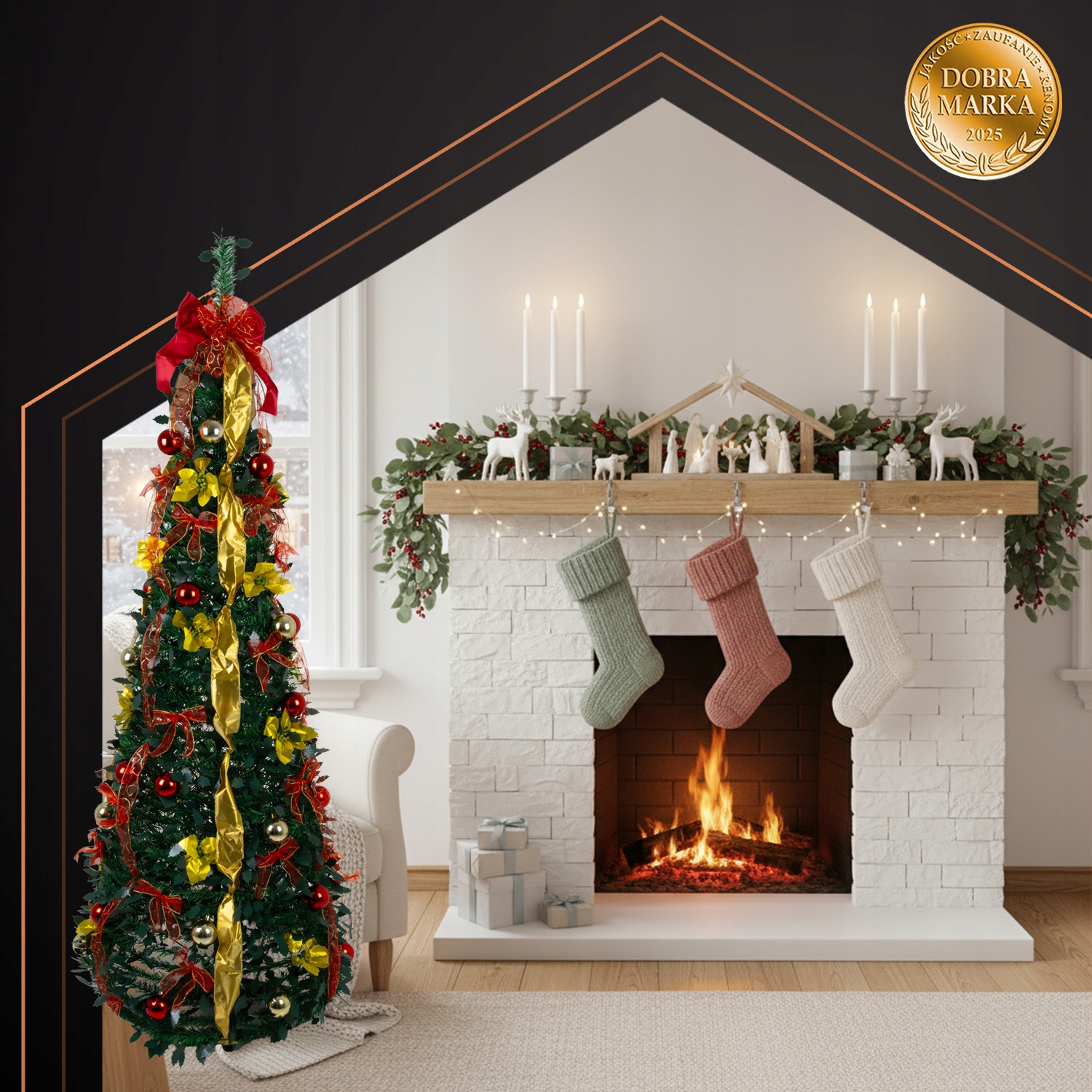 - Kokkupandav “pop-up” konstruktsioon – kuusk on püsti vähem kui minutiga! Lihtsalt tõsta, ava ja kuusk seisab iseseisvalt. Pärast pühi saab selle lihtsalt kokku voltida ja hoiustades võtab väga vähe ruumi.