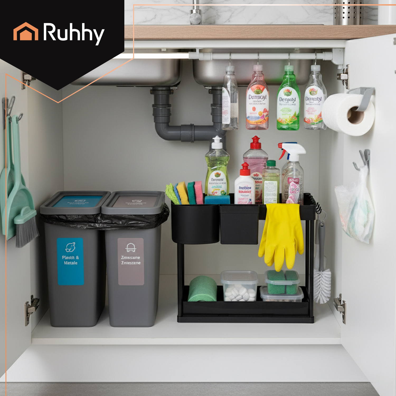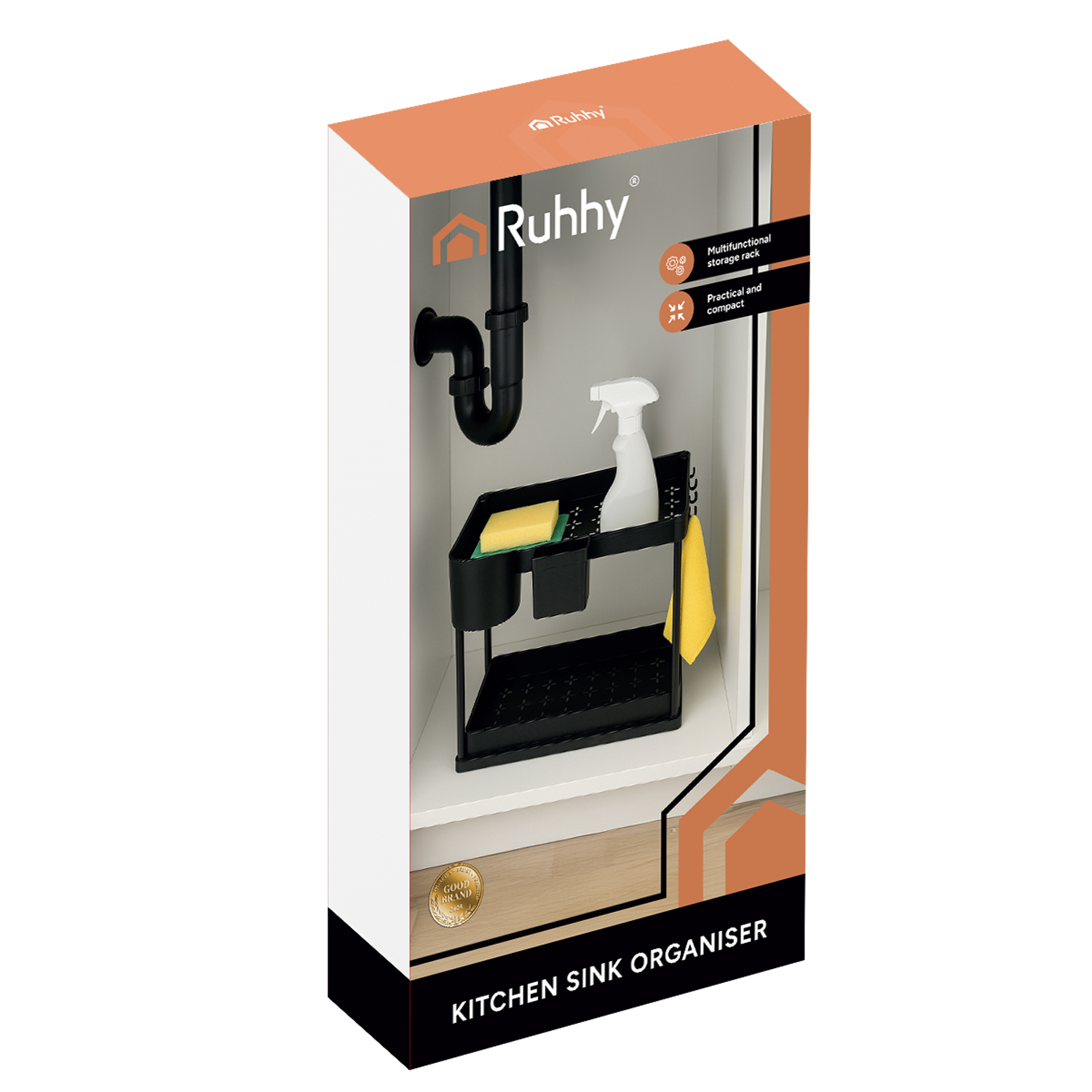 - Ruumisäästlik ja praktiline disain – kahe tasemega riiul aitab maksimaalselt ära kasutada valamualust või muud piiratud ruumi.