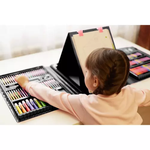 See kohvrisse pakitud joonistuskomplekt on praktiline ja sisukas valik lapsele, kes armastab joonistada ja maalida. Kaasaskantav disain, suur tarvikute valik ja korrastatud paigutus teevad sellest usaldusväärse loovkomplekti igapäevaseks kasutuseks.