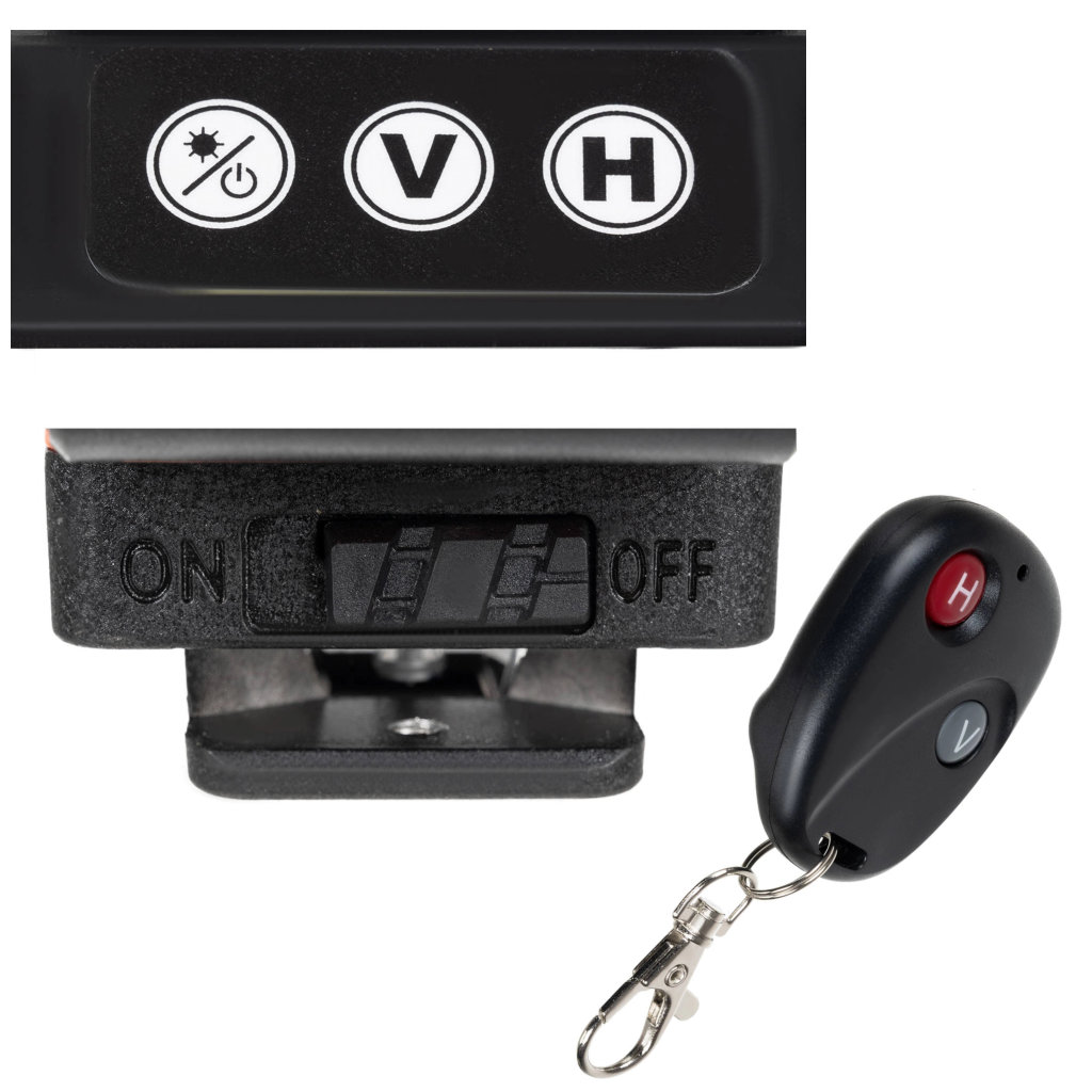 * Lisaks seadme peal olevatele nuppudele saab laserkiiri lülitada ka mugava kaugjuhtimispuldi abil. Nii ei pea igakord laseri juurde minema ning pole ka ohtu, et selle kogemata paigast ära ajad.