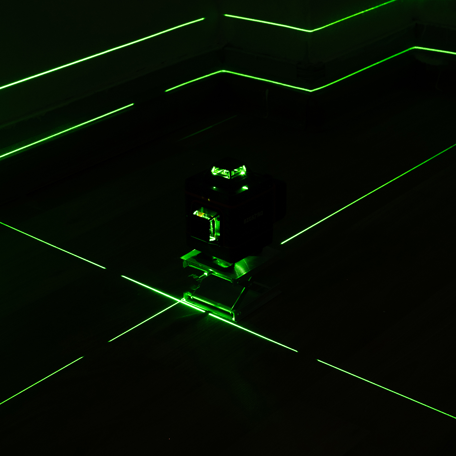 * Seade tekitab 16 laserkiirt – 8 vertikaalselt ning 8 horisontaalselt ehk tekitab 360° 4D ruudustiku
