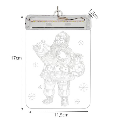 Kahepoolne 3D LED vitraaž jõuluvana on ideaalne kaunistus, mida saab riputada aknale, et luua võluv atmosfäär nii sees kui väljas. Vastupidavast plastikust valmistatud vitraaž on varustatud lasergraveeringuga, mis tagab pikaajalise vastupidavuse.