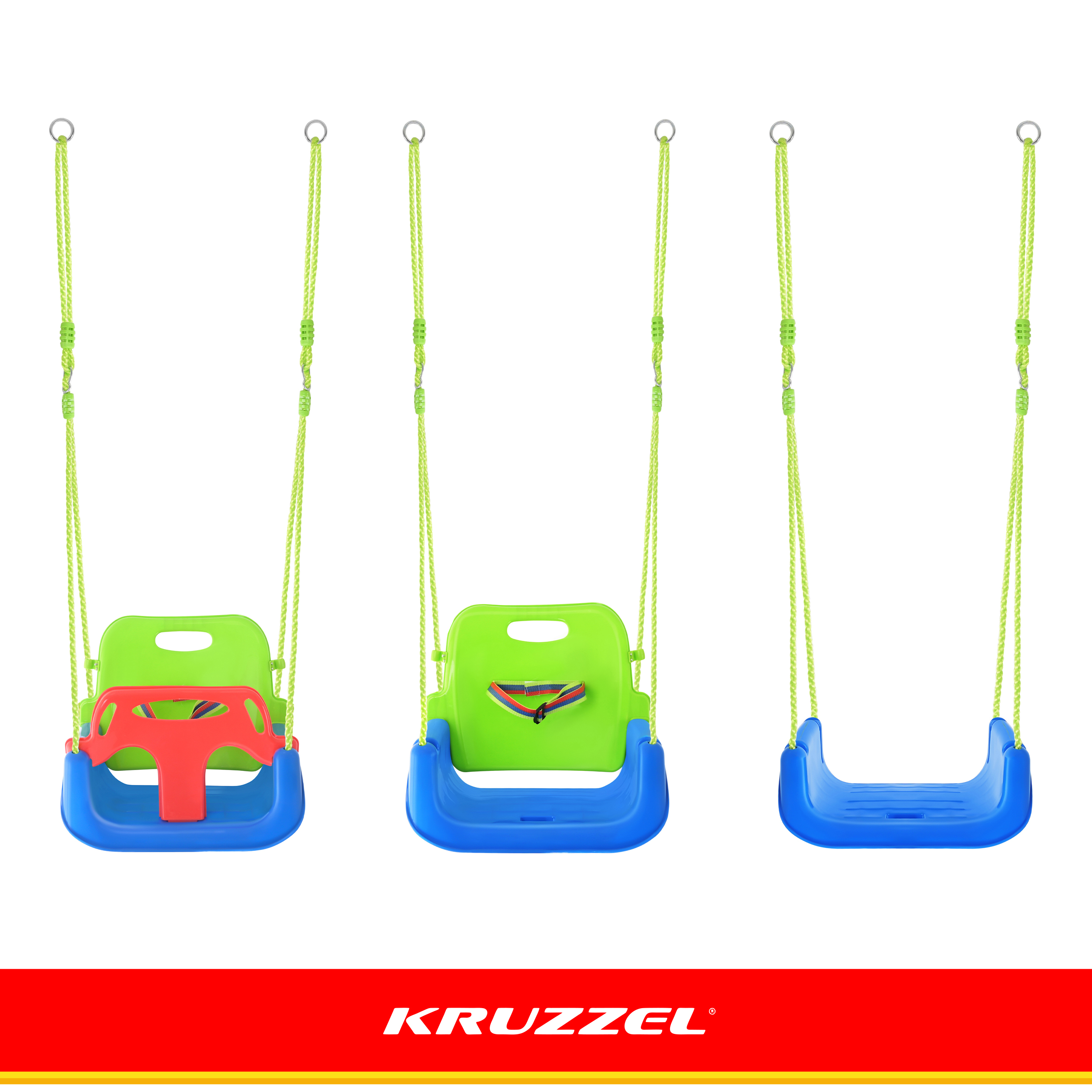 Mitmeastmeline 3-ühes lastekiik on praktiline lahendus nii tuppa kui ka aeda. Tänu eemaldatavatele turvaelementidele kohandub kiik lapse vanuse ja arenguetapiga – ühest mudelist jätkub mitmeteks aastateks. Sobib kasutamiseks alates 6. elukuust ning maksimaalne kandevõime on 30 kg.