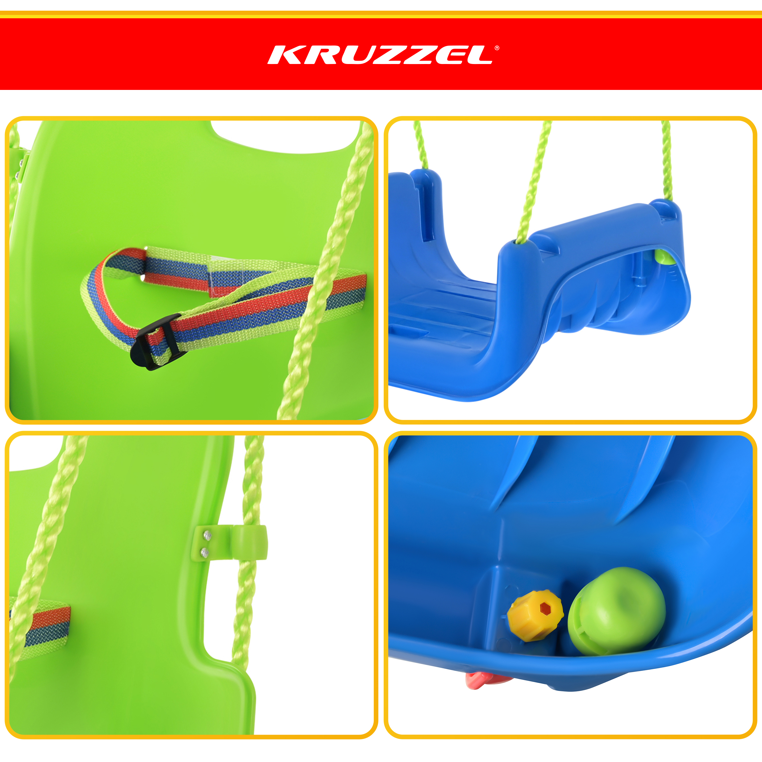 Sobib alates 6. elukuust – kõrge seljatugi, turvapiire ja reguleeritav rihm aitavad hoida lapse stabiilses asendis ka esimestel kiikumiskordadel.