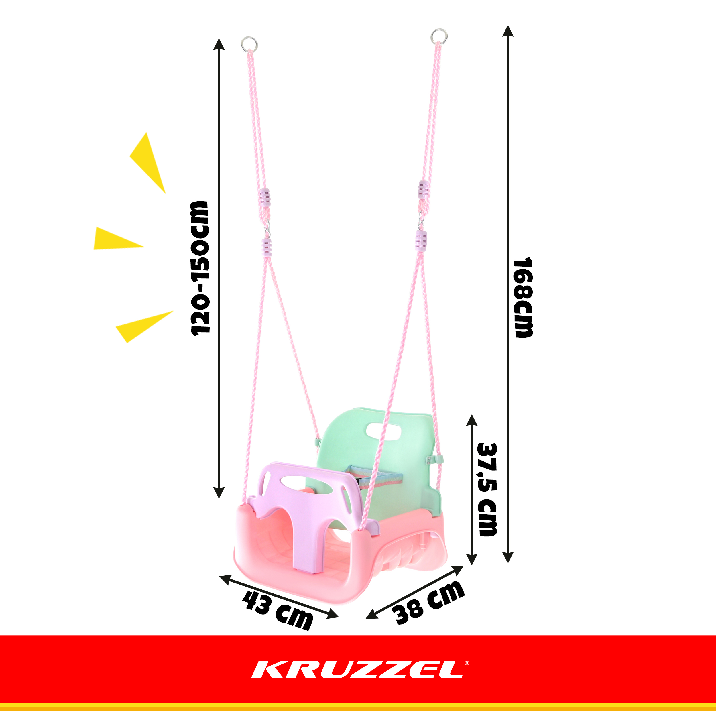 Kerge ja praktiline – kiige kaal 1,6 kg (pakendis 1,85 kg), lihtne paigaldada ja vajadusel ümber tõsta.