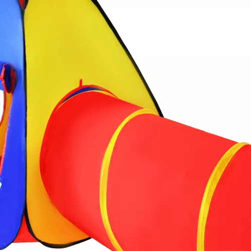Mitmekülgne 3-ühes mängutelgi komplekt pakub lastele põnevaid seiklusi nii toas kui ka õues. Komplekti kuuluvad koonuskujuline tipi, kuubikukujuline majake ja neid ühendav painduv tunnel. See loob avara mänguala, kus saab roomata, peitust mängida või kujundada oma fantaasiamaailma. Sobib alates 3. eluaastast.