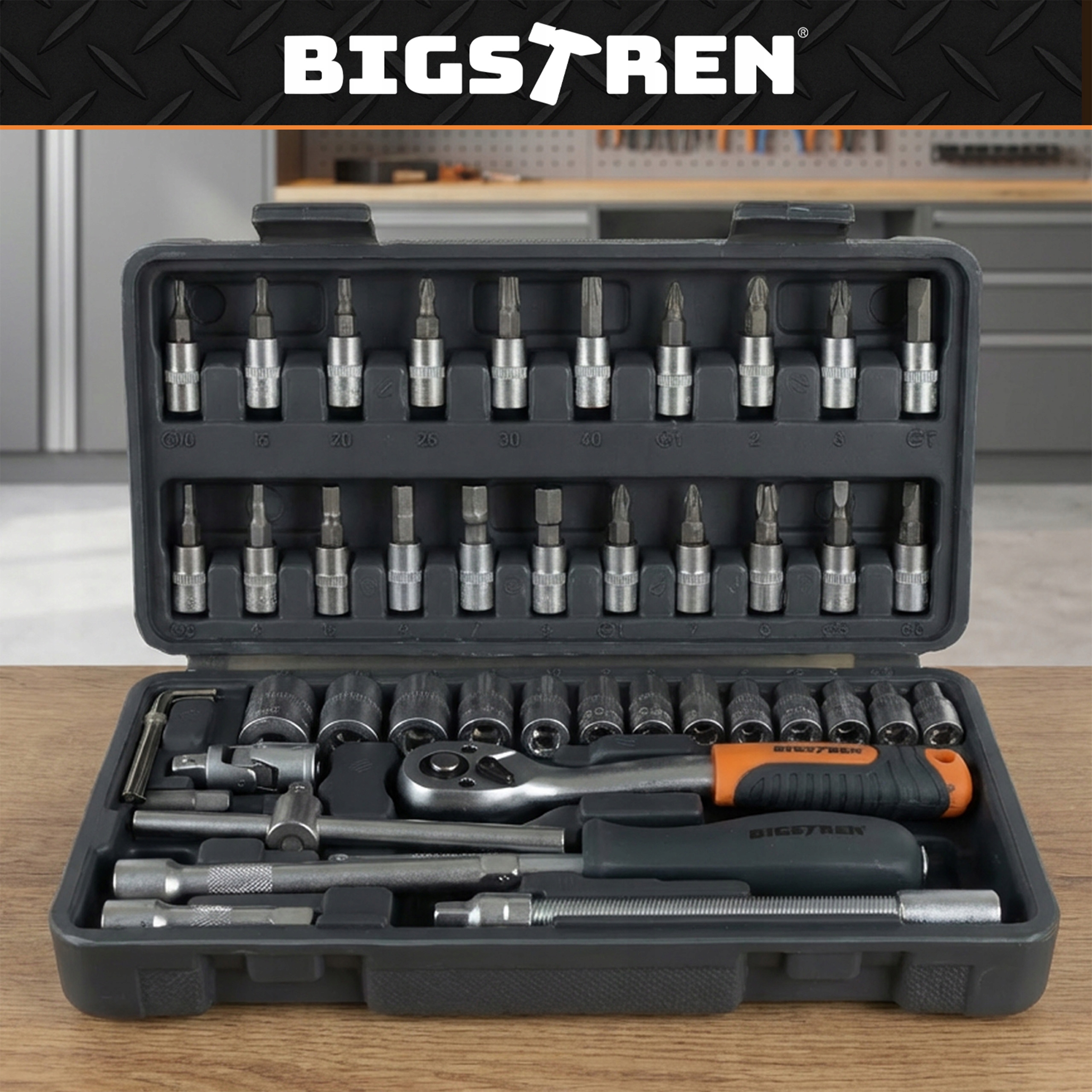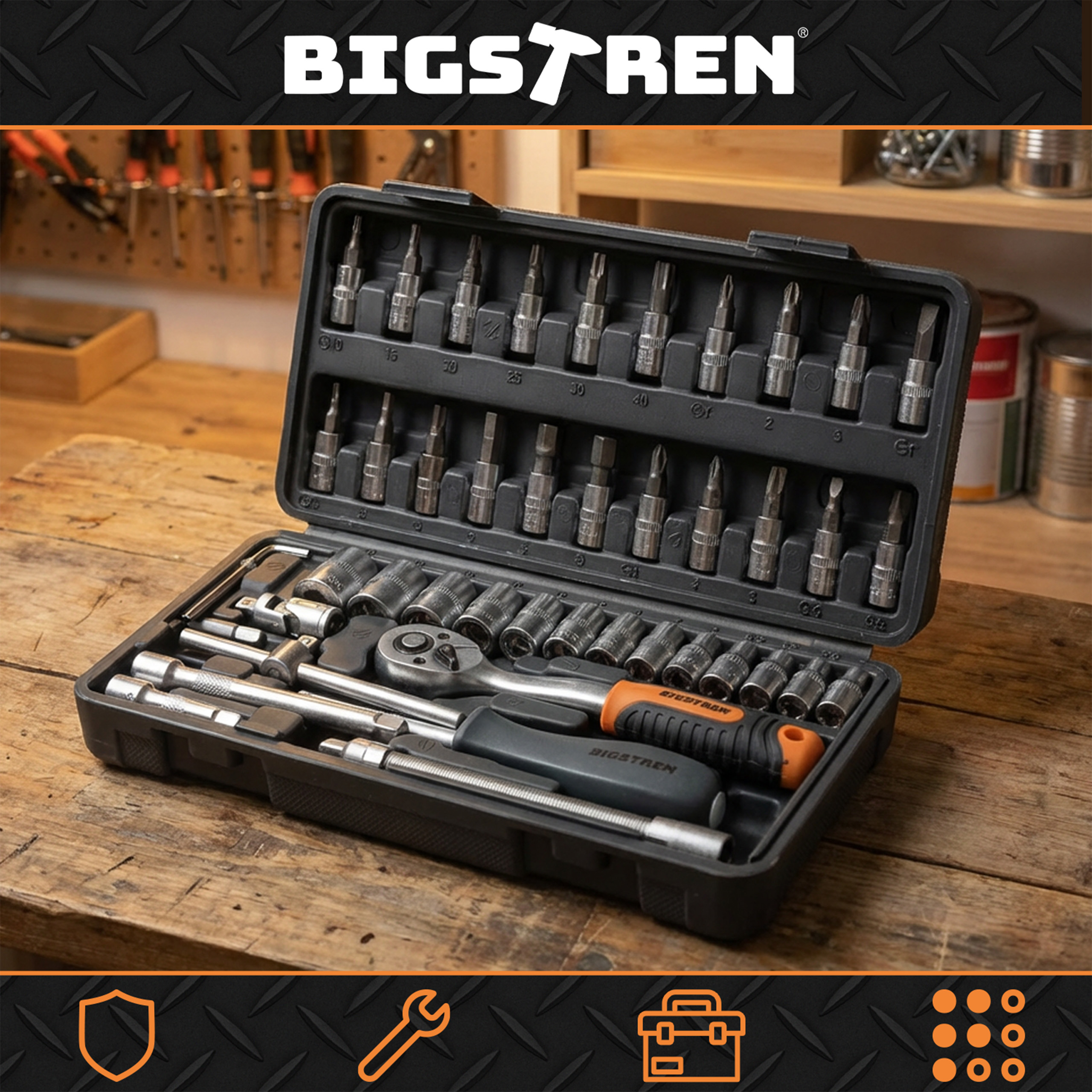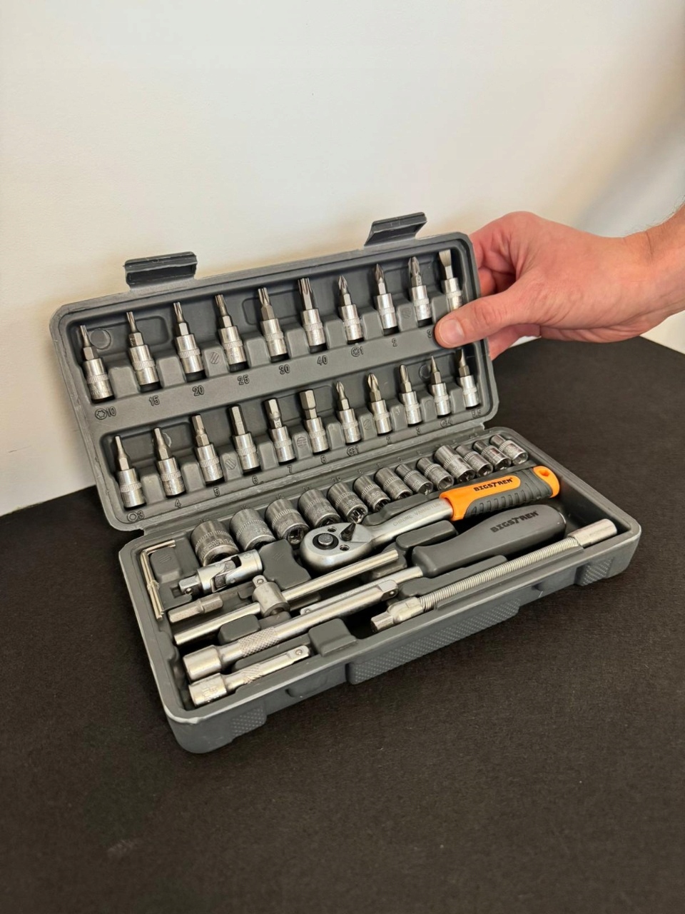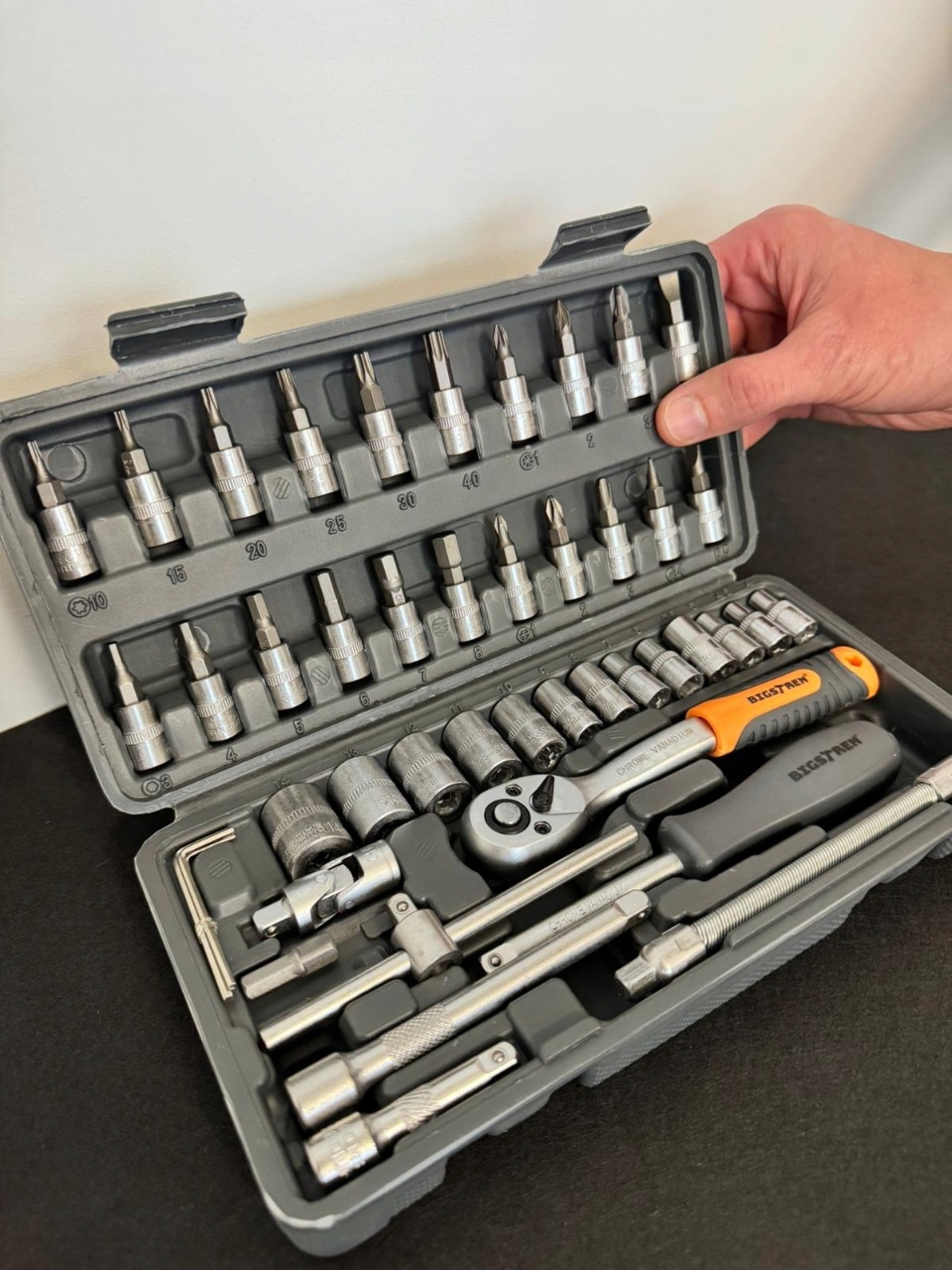 Korras töö ja kiirem leidmine – igal detailil on oma pesa, nii et komplekt püsib transpordil paigas ning õige otsik on kohe leitav.