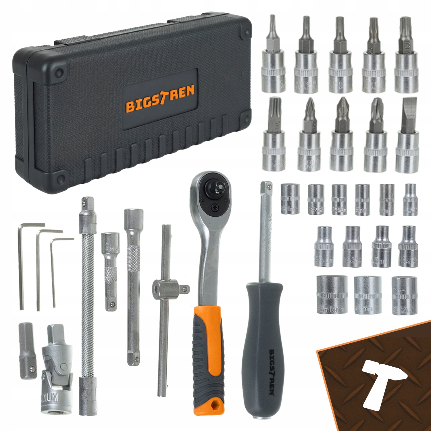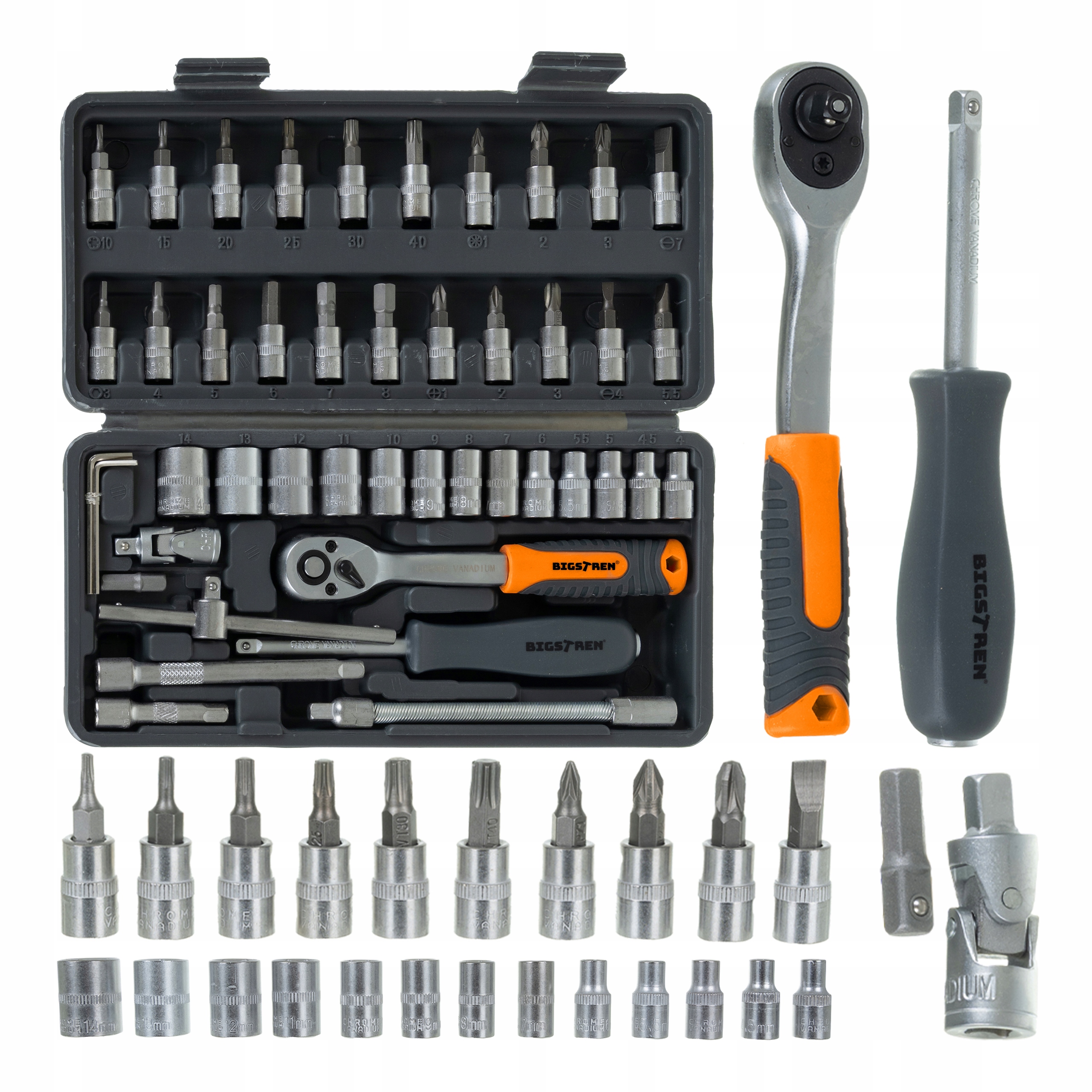 46-osaline 1/4″ padrunvõtmete ja otsikute komplekt kohvris