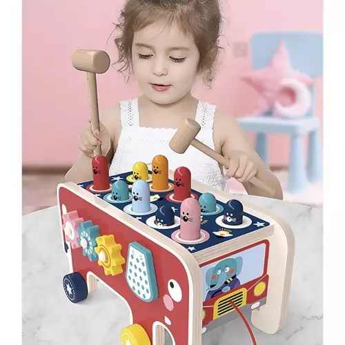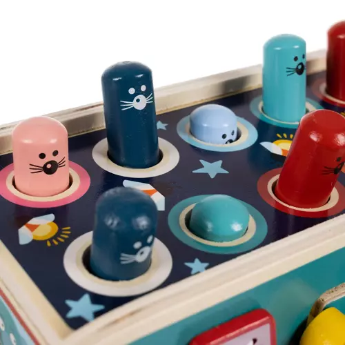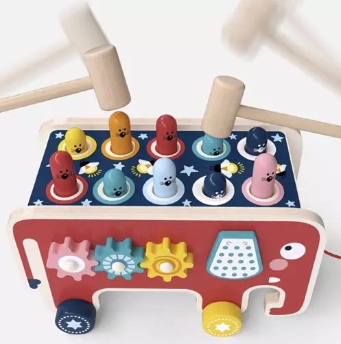 * Haamrimäng – kui üks pulk haamriga alla toksida tõuseb teine üles (väiksemad lapsed võivad esialgu pulki ka käega alla vajutada). Kaasas 2 haamrit, saab mängida ka kahekesi või toksida kahe käega korraga. Haamrimäng arendab hästi käelist osavust ning käe-silma koostööd.