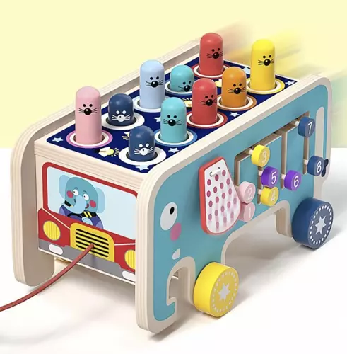 * Järelveetav buss – elevandikujulisel bussil on all rattad ning ees vedamiseks nöör. Laps saab bussi ringi sõidutada.