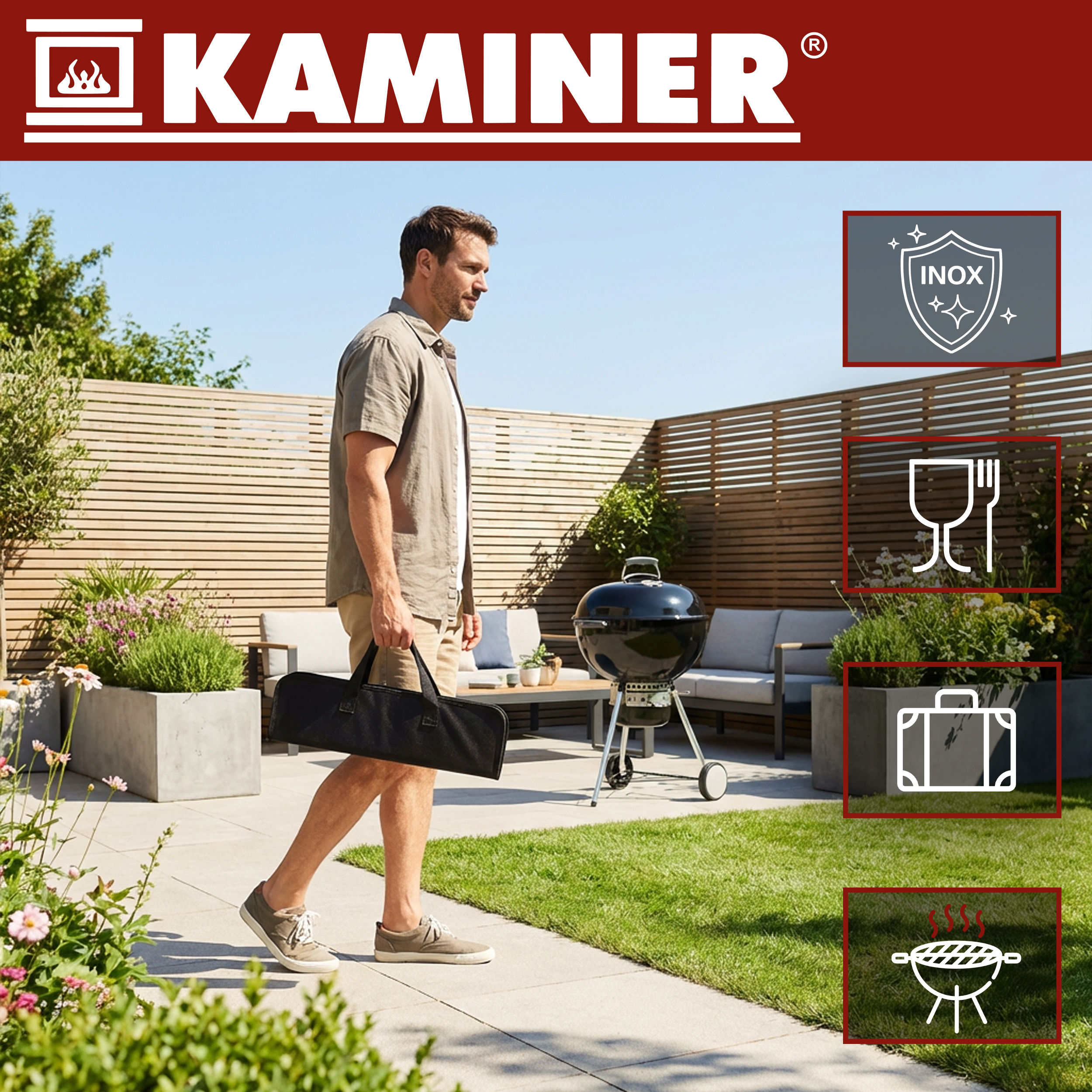 Praktiline grillitarvikute komplekt aitab hoida kõik vajalikud tööriistad organiseeritult ühes kohas. Komplekti kuuluvad tangid, grillilabidas, kahvel, nuga ja marinaadipintsel, mis on paigutatud tugevasse kandekohvrisse. See muudab grillimise mugavamaks nii aias, terrassil kui ka reisil või piknikul – piisab vaid kohvri kaasa võtmisest ja kõik vajalik on kohe olemas.