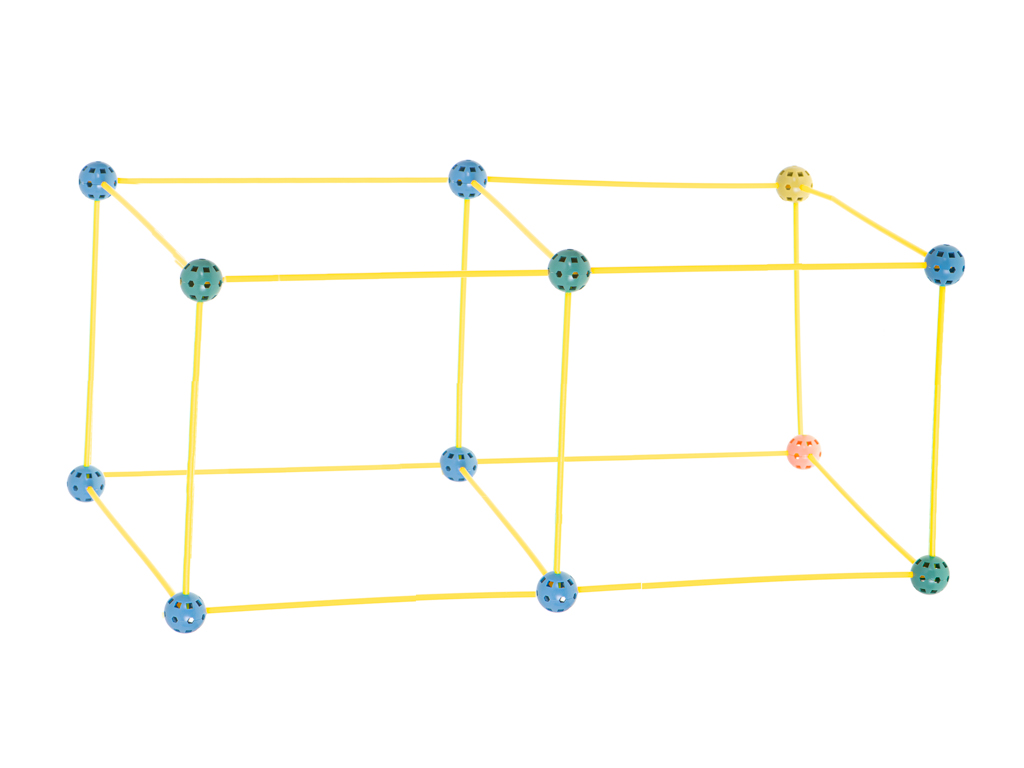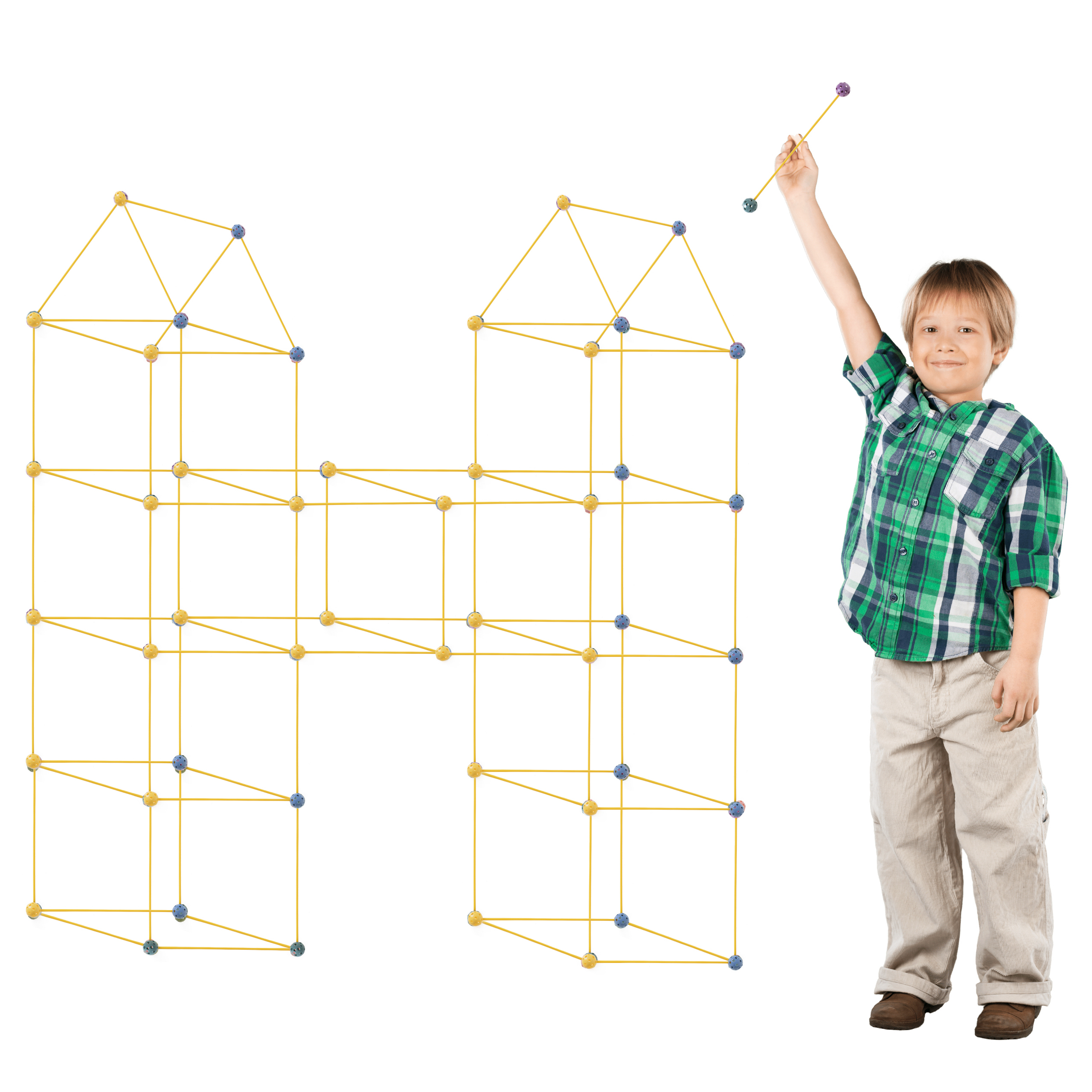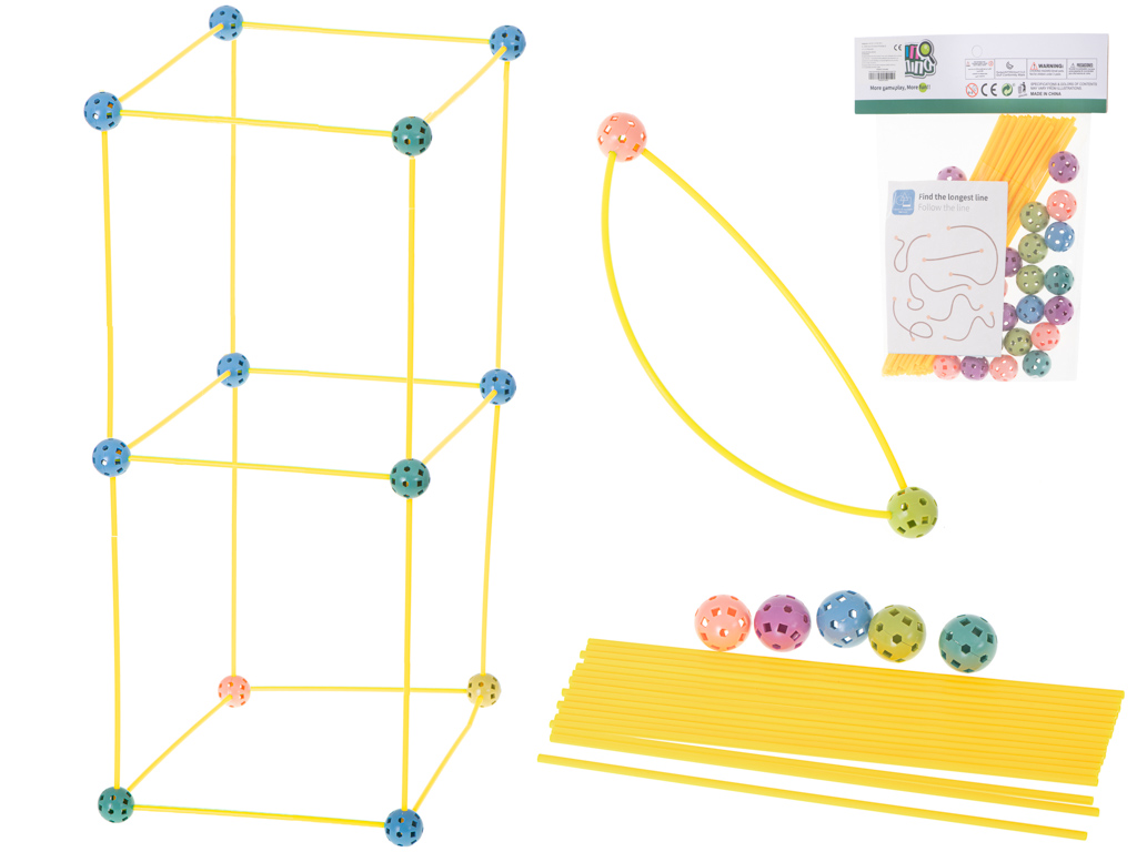 - 75-osaline ehituskomplekt suurteks konstruktsioonideks – komplektis on 51 kollast toru ja 24 ühenduskuuli, millega saad ehitada mahukaid ja stabiilseid raame.