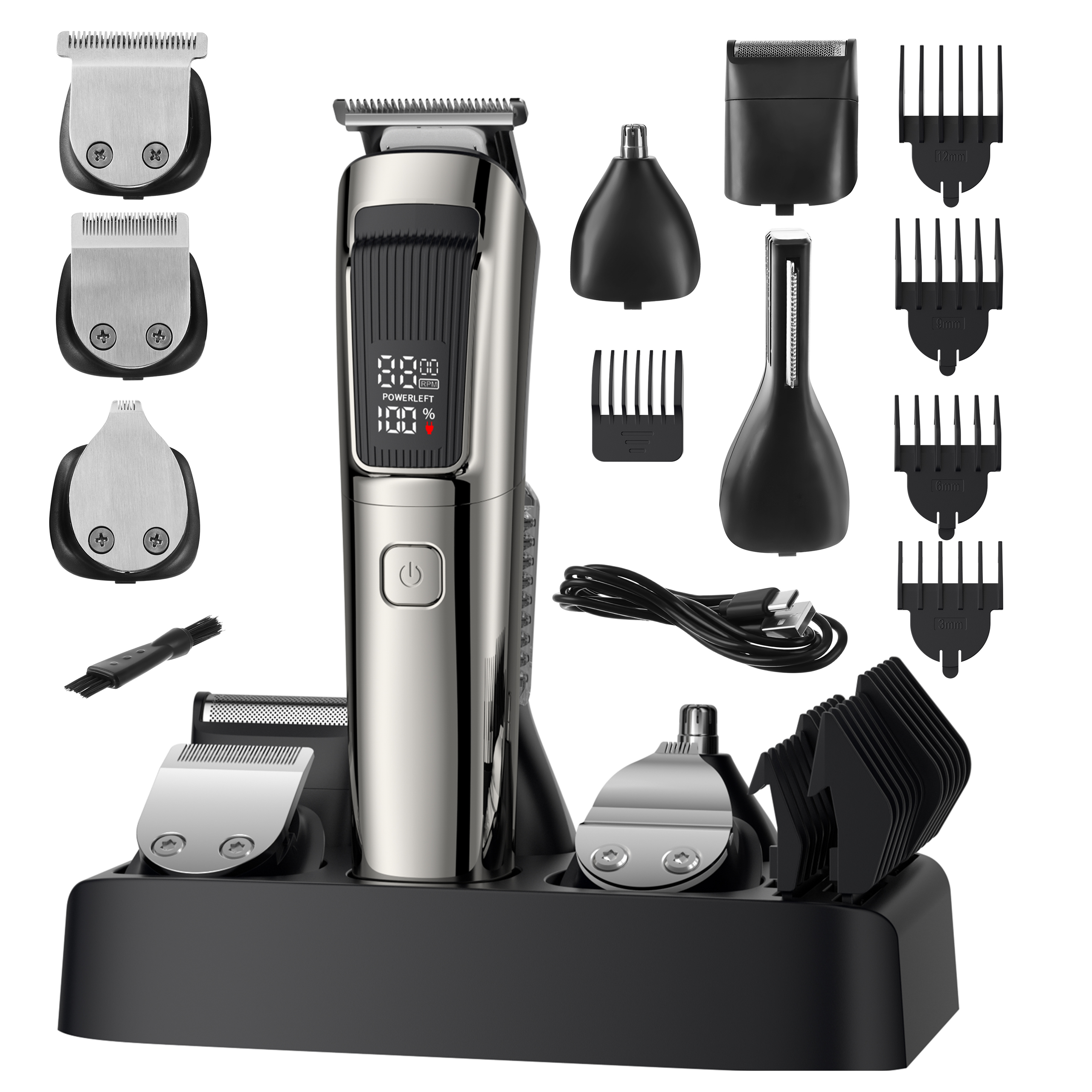 Mitmeotstarbeline hooldusseade võimaldab lõigata juukseid, kujundada habet ja vuntse ning hooldada keha-, nina- ja kõrvakarvu ühe seadmega. Vahetatavad otsikud, digitaalne ekraan, USB-C laadimine ja veekindel konstruktsioon muudavad selle praktiliseks igapäevaseks kasutamiseks nii kodus kui ka reisil.