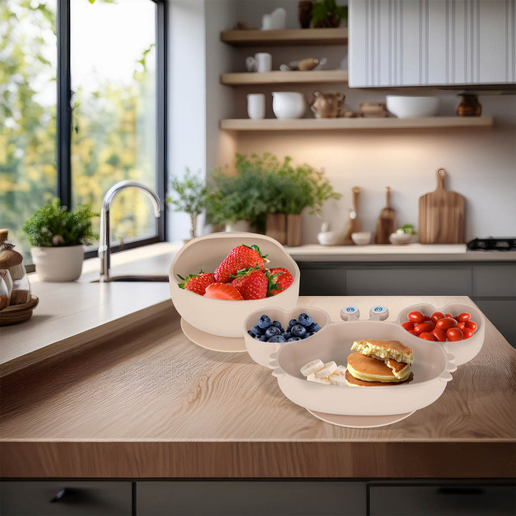 Iminapad tagavad stabiilsuse – Kolmeosaline taldrik ja kauss kinnituvad tugevalt laua külge, vähendades ümberkukkumise ja toidu mahaloksumise riski. See annab lapsele kindlustunde ja vanemale meelerahu.
