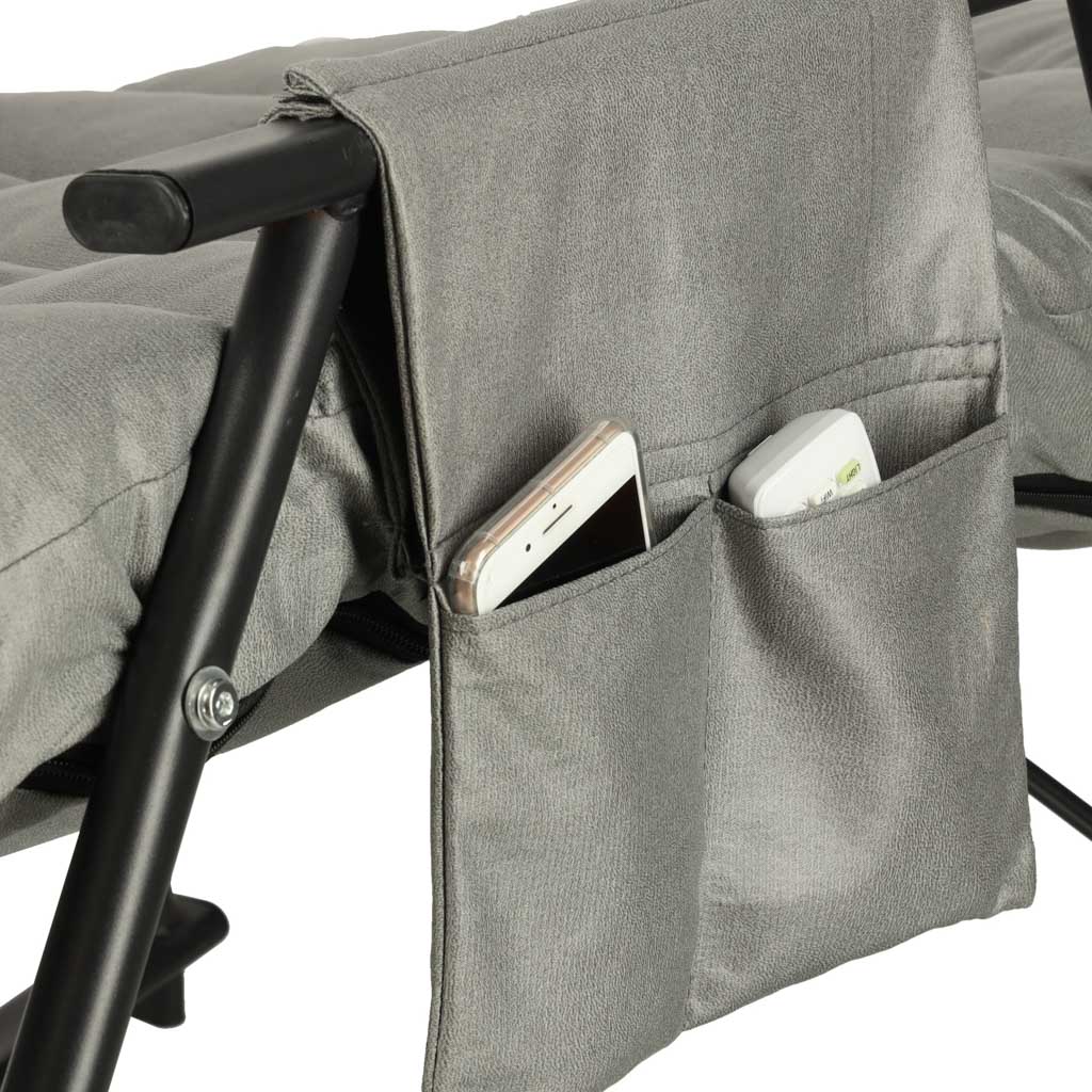 - Käetoed praktiliseks kasutamiseks – käetoed lisavad mugavust ning aitavad istumisasendit paremini hoida. Ühel käetoel on lisaks kaheosaline tasku, kuhu saab panna näiteks telefoni, ajalehe või muud väiksemad esemed, mida on hea käeulatuses hoida.