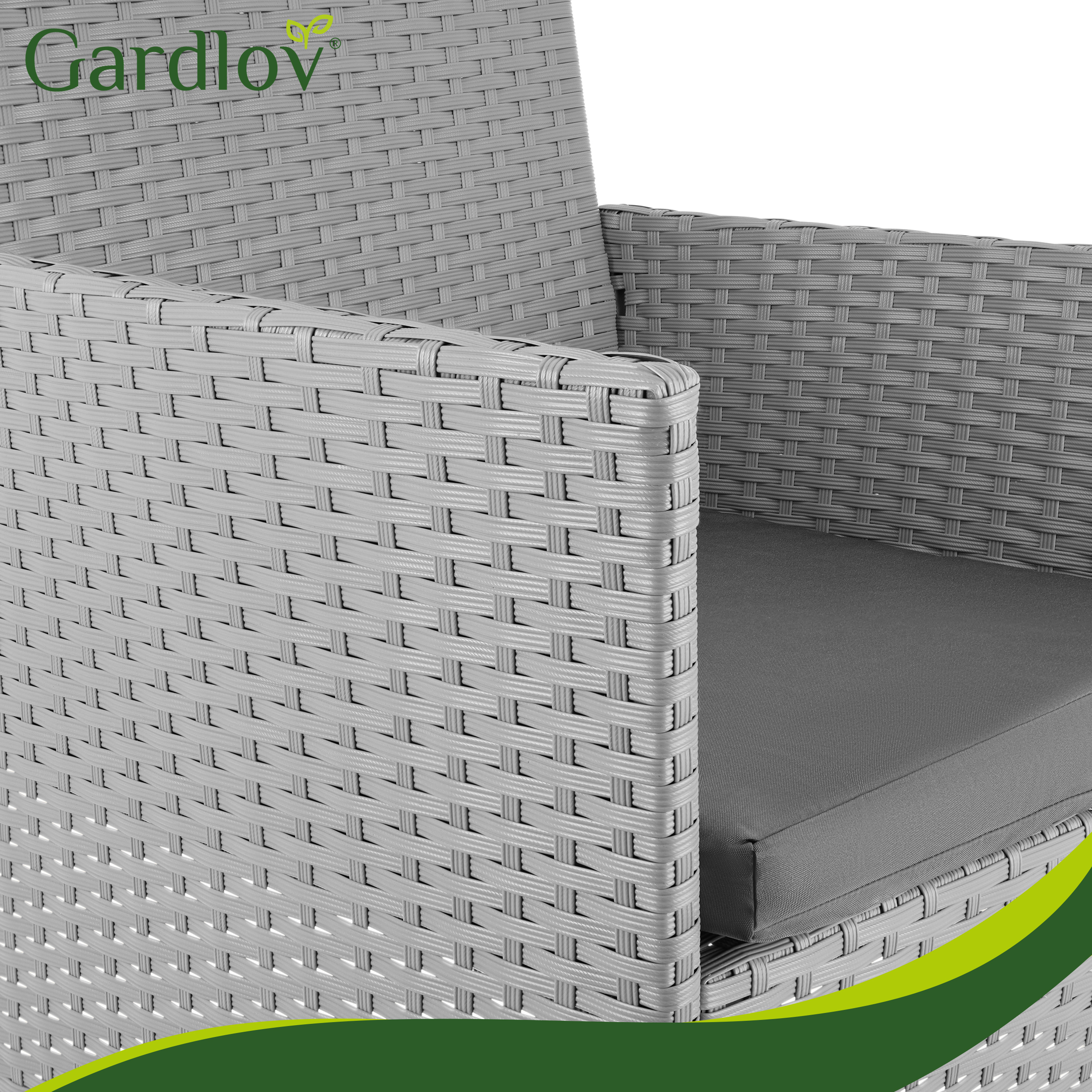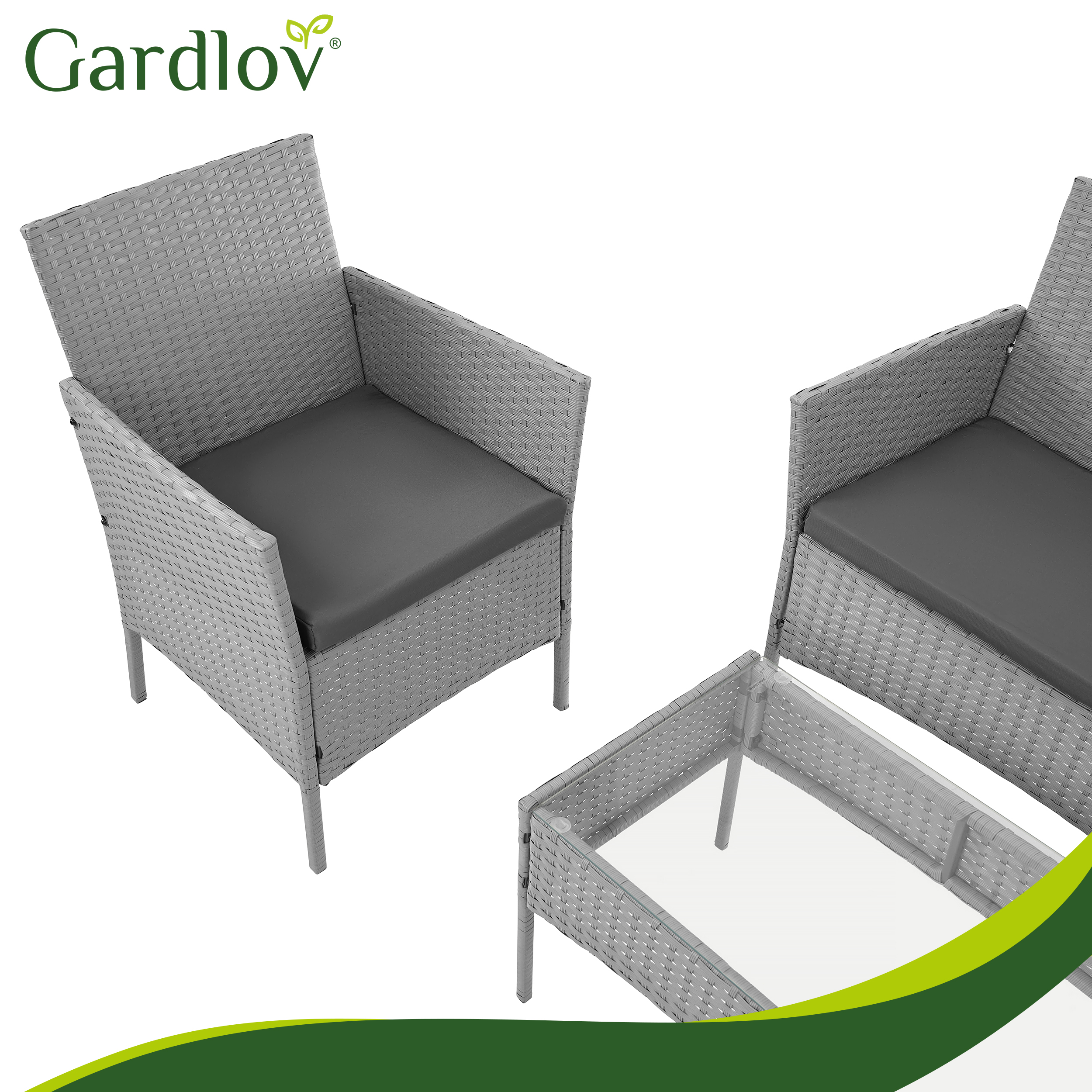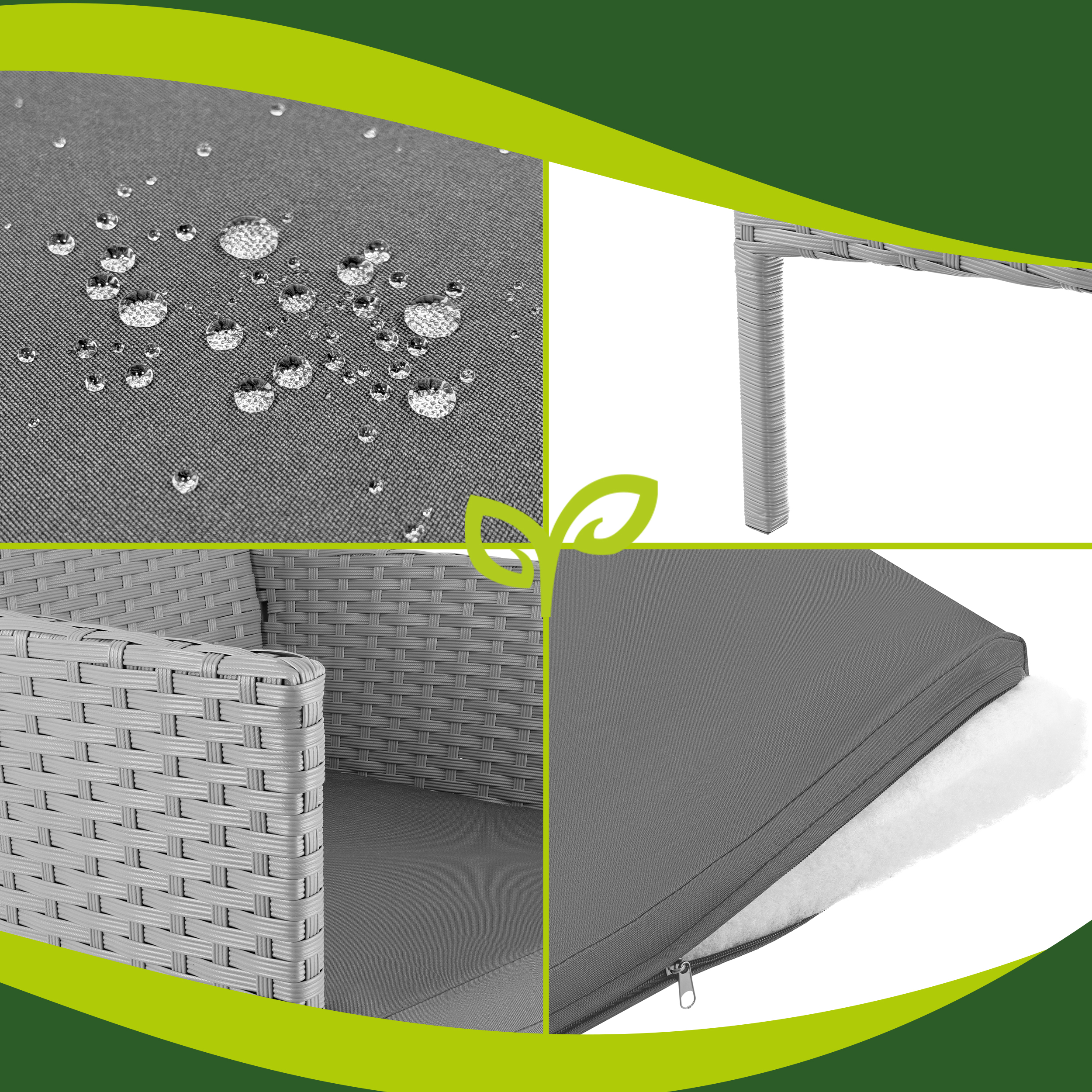 Mööbel on disainitud nii, et see oleks mugav, praktiline ja visuaalselt kaasaegne. Pehmed istmepadjad suurendavad istumismugavust ning universaalne tumehall toon sobib hästi erinevate terrassi- ja aiakujundustega.