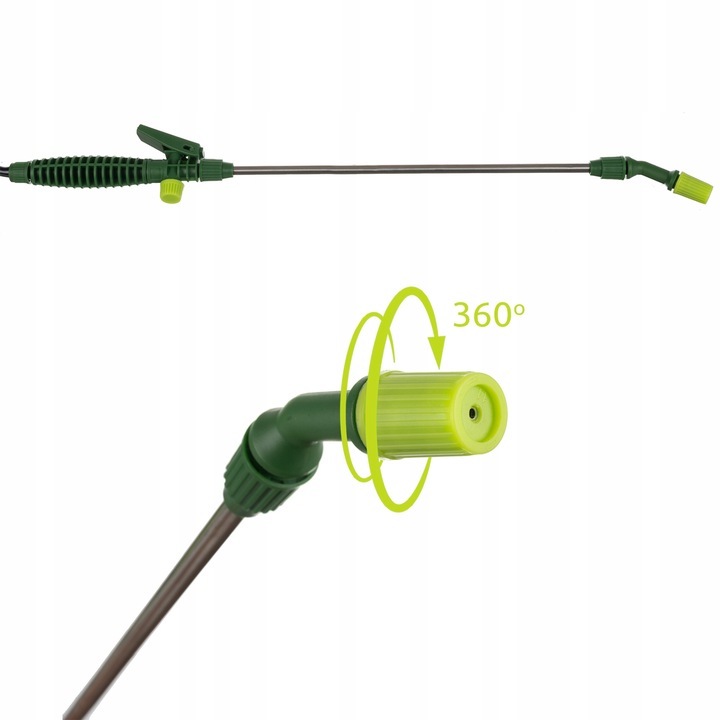 * Tööraadius 150cm. Pihustil on 110cm painduv kummivoolik ning 40cm metallist pihusti-toru ja keeratav otsik – tänu sellele pääseb mugavalt pritsima ka raskesti ligipääsetavatesse kohtadesse ning saab suunata veejoa just soovitud kohta. Samuti saab paagi maha asetada ning töödelda suure ala ilma pidevalt mahutit liigutamata.