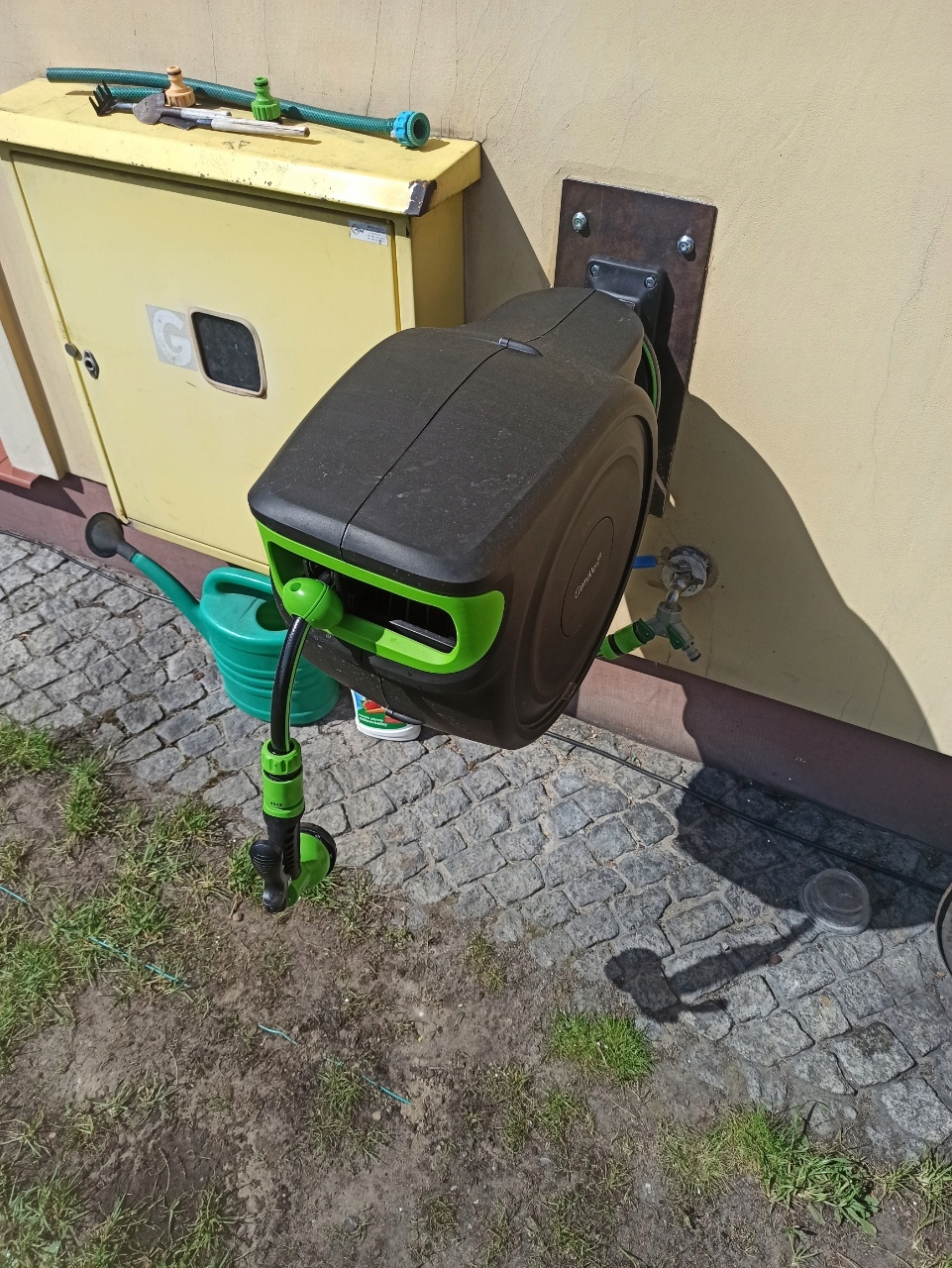 Automaatne aiavooliku rull 25m + pööratav seinakinnitus ja kastmispüstoliga