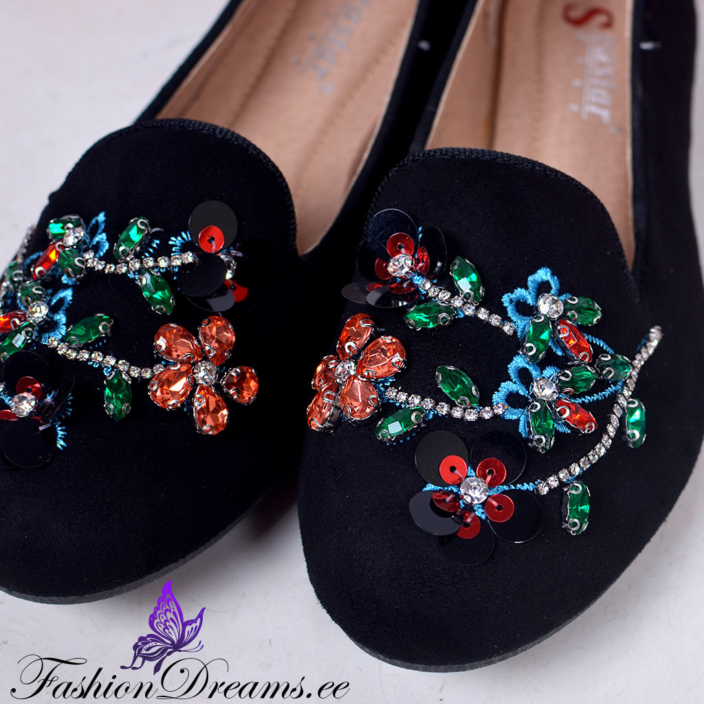 * Peal väga efektne kivikeste, litrite ja tikanditega lille-motiiv