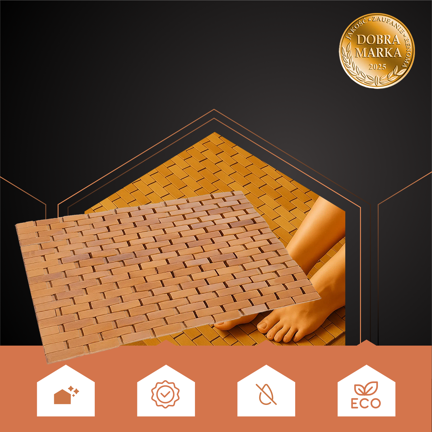 Veekindel ja kiiresti kuivav pind – bambusliistude konstruktsioon võimaldab veel kiiremini kuivada, mis aitab vähendada niiskuse kogunemist ja hallituse teket.
