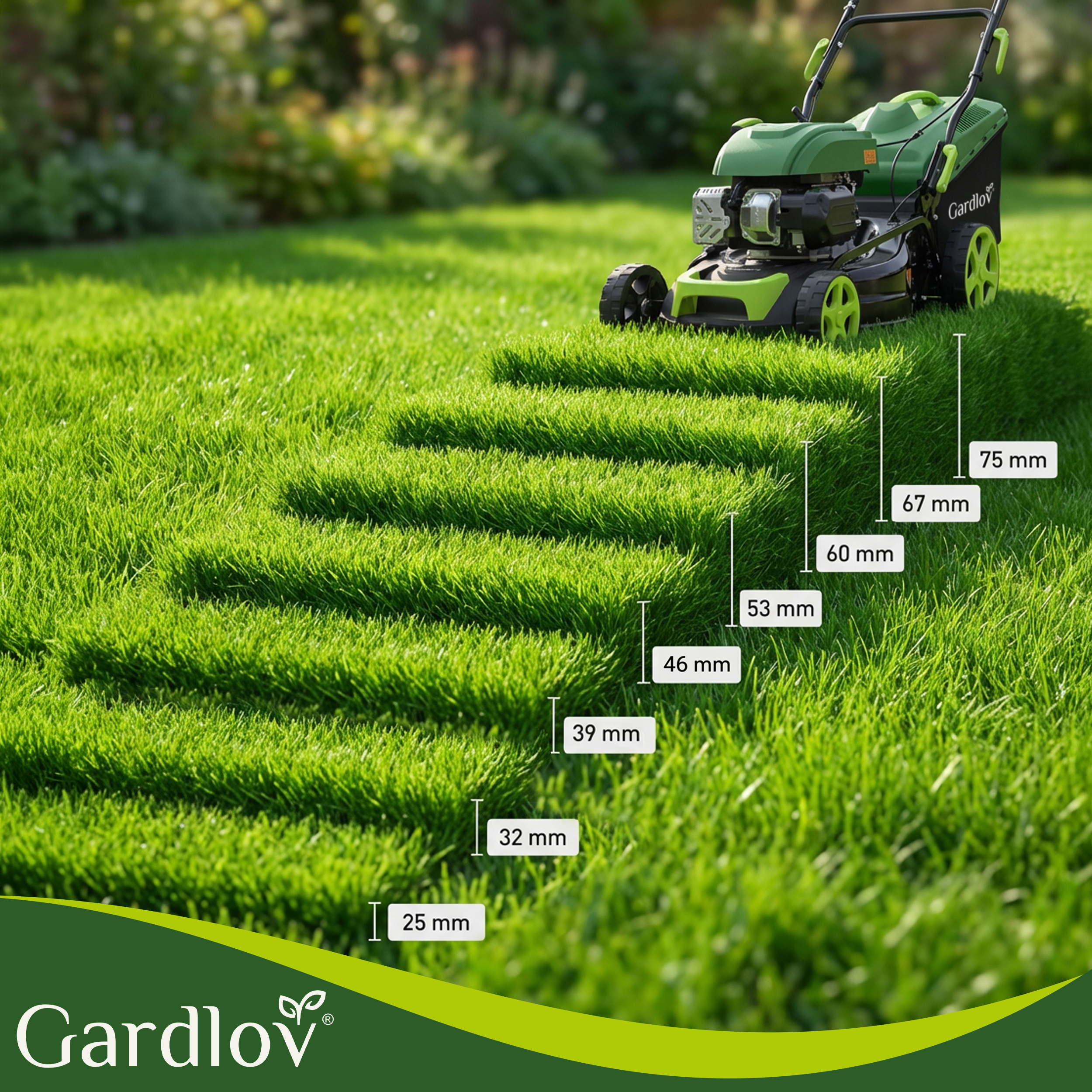 - 8 lõikekõrguse taset vahemikus 25–75 mm – saad valida sobiva kõrguse vastavalt aastaajale, murukasvu tugevusele ja soovitud tulemusele, alates madalamast lõikest kuni kõrgema muruni.