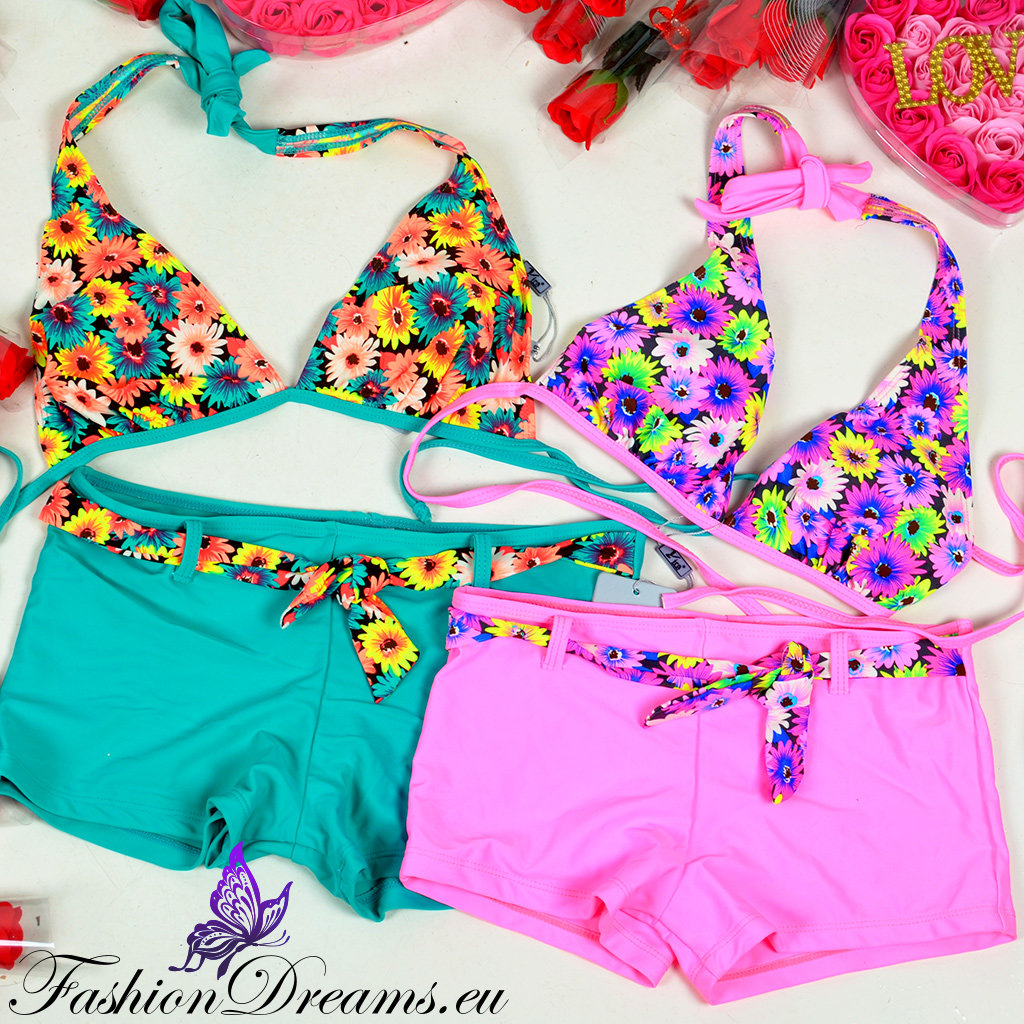 Rinnahoidjad kolmnurkse lõikega (sees hästi õhuke polsterdus), seotavate paelade ning kauni lillemustriga. Sobib A-B korvile