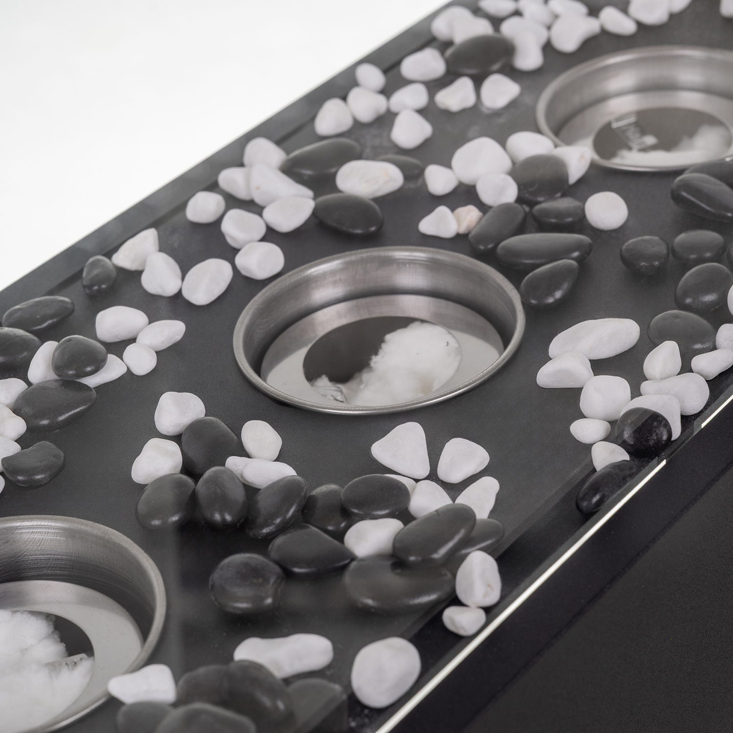 - Leeki kaitsev klaas: Stabiilne konstruktsioon ja kolm terasest konteinerit tagavad pikema põlemise.