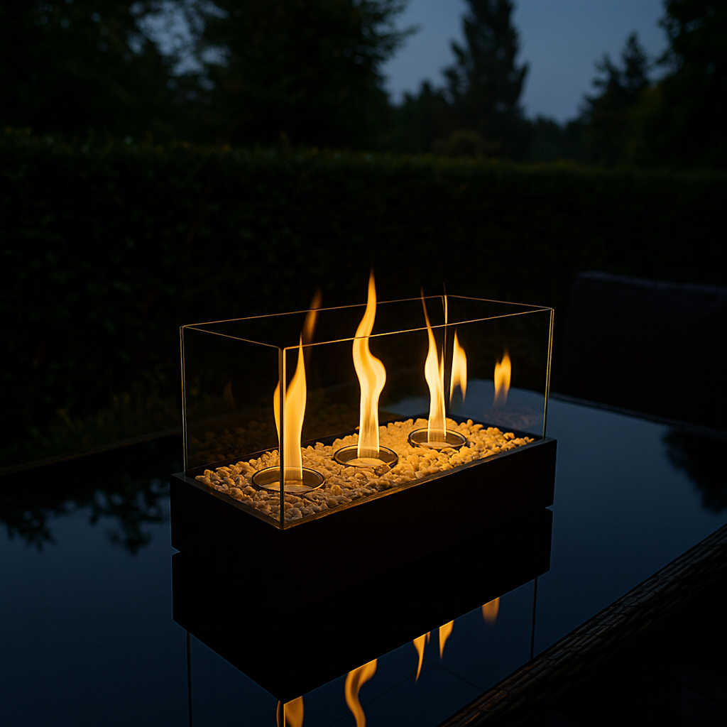 - Meeldiv soojus ja õdus õhkkond: Biokamin mitte ainult ei kaunista interjööri, vaid kiirgab ka meeldivat soojust, mis sobib ideaalselt jahedamateks õhtuteks terrassil või elutoas.
