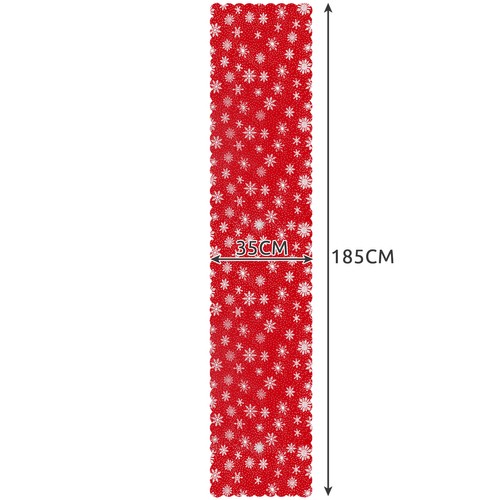 LONG CHRISTMAS TABLE RUNNER RED WITH WHITE SNOWFLAKES 185 x 35 cm