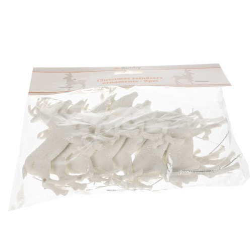 - SPECIFICATION – color: white with glitter; material: PP; number of pieces: 9; dimensions: 9.5 x 7 cm; weight: 84 g; weight in packaging: 89 g.