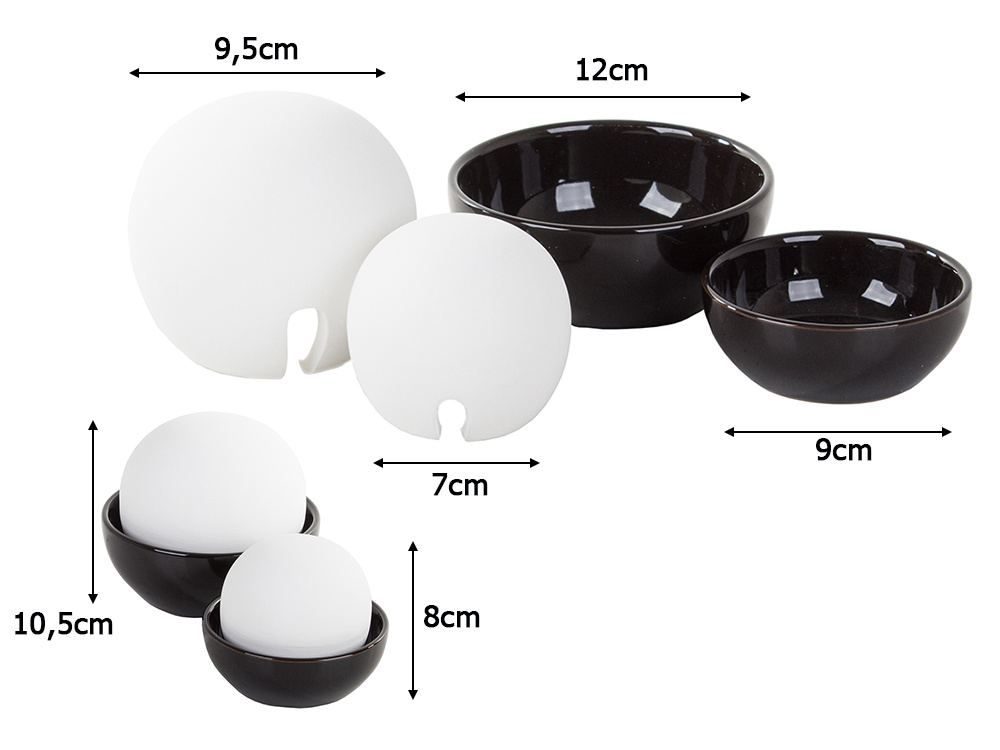 - Mõõdud: Väike – 9cm x 8cm x 7cm, Suur – 12cm x 10,5cm x 9,5cm