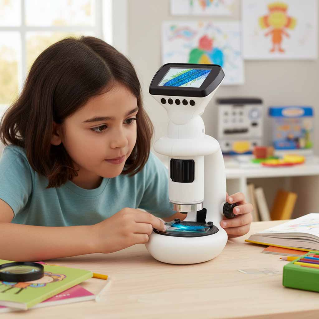 Kaasaegne 3-ühes digitaalne mikroskoop viib lapse põnevasse mikromaailma. Suurendusvahemik 200x kuni 1000x võimaldab uurida lehesooni, tekstiilikiude, taimede rakustruktuure, liivateri või putukate tiibade detaile selge ja terava pildiga. Sobib alates 6. eluaastast ning ühendab õppimise ja avastamisrõõmu.
