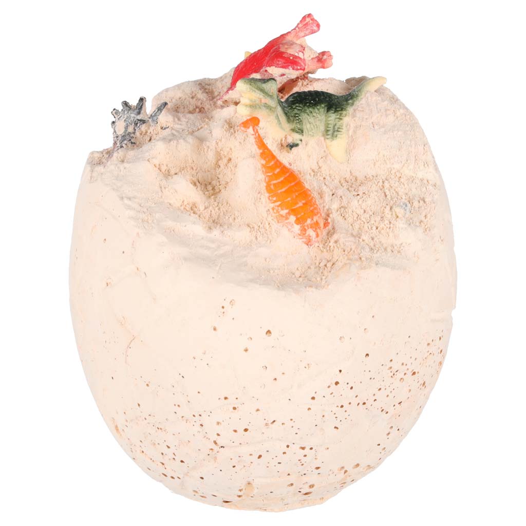 - 1x suur kipsist muna 12 dinosauruse figuuriga sees