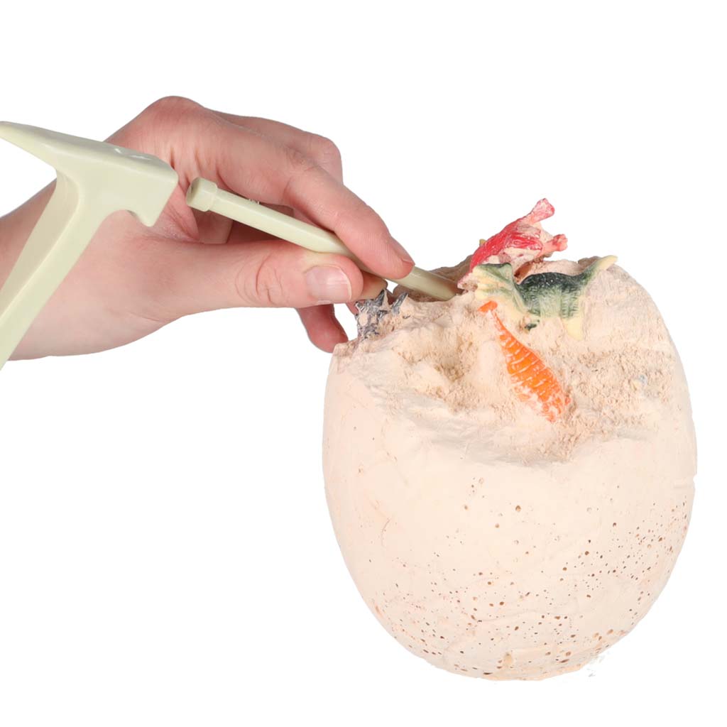- Põnev avastamiskogemus: Komplekt sisaldab suurt muna, milles peitub 12 erinevat dinosauruse figuuri. Lapsed saavad ise need “kivist” kooriku seest välja kaevata, kasutades kaasasolevaid tööriistu.