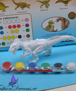 * Komplektis valge dinosaurus, 6 värvi, pintsel ning aluspaber, mille peal värvida