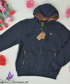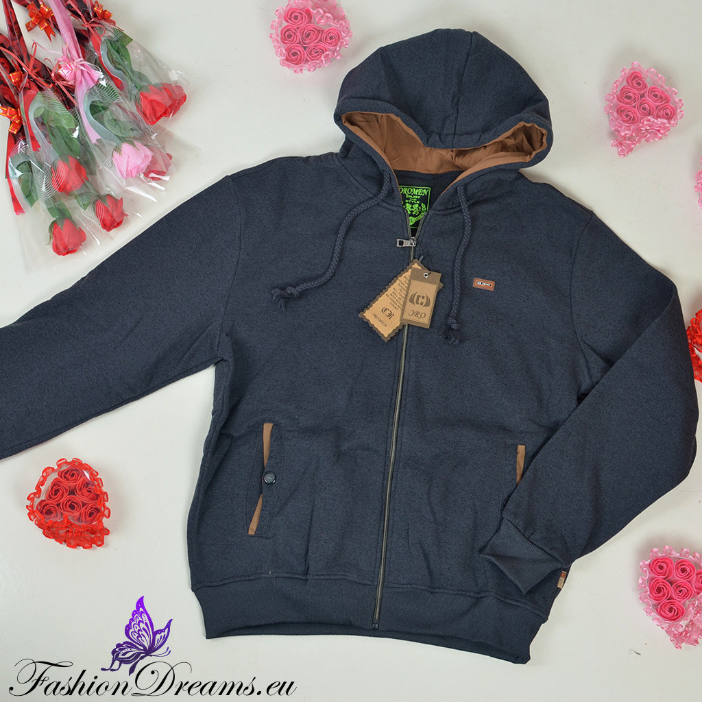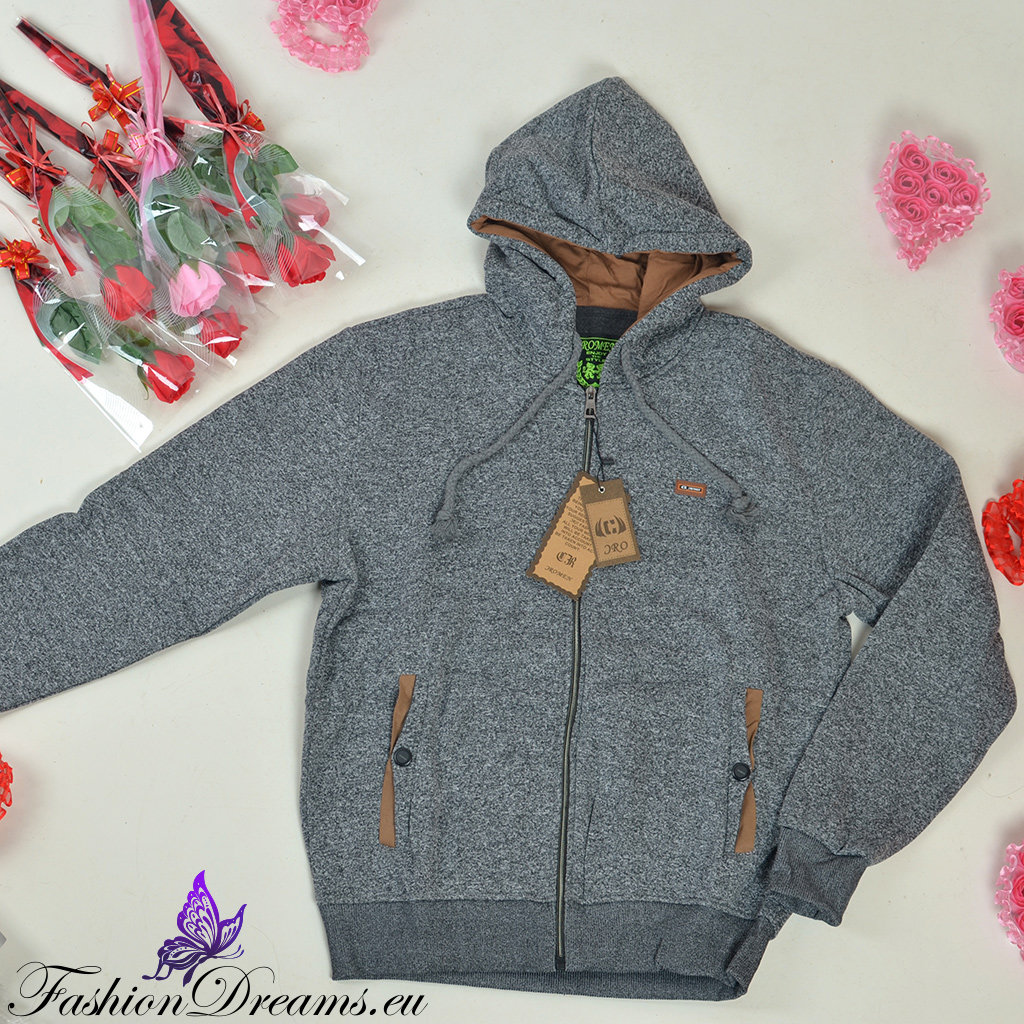 Korraliku kapuutsiga, külgedel taskud, käiste otstes ja alumises servas soonik.