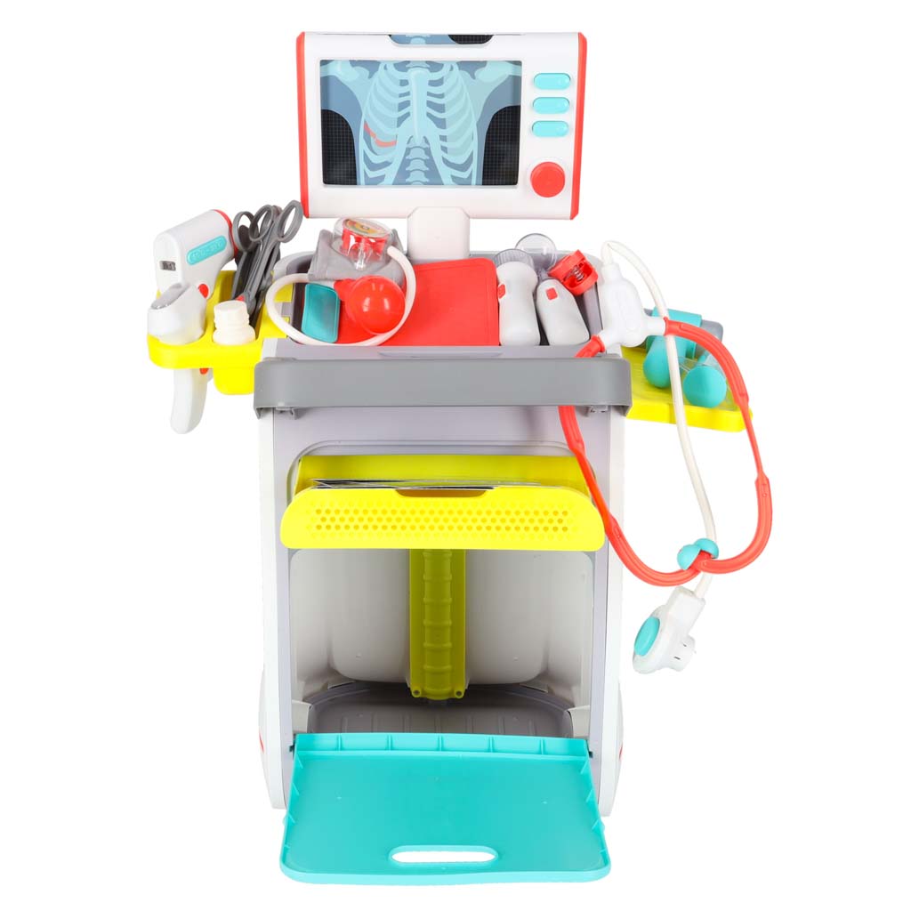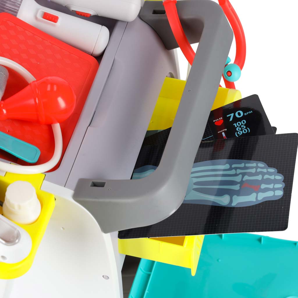 - Interaktiivsed funktsioonid: Meditsiinijaam mängib erinevaid meloodiaid ja mõned tarvikud vilguvad ning teevad helisid, lisades mängule elulisust.