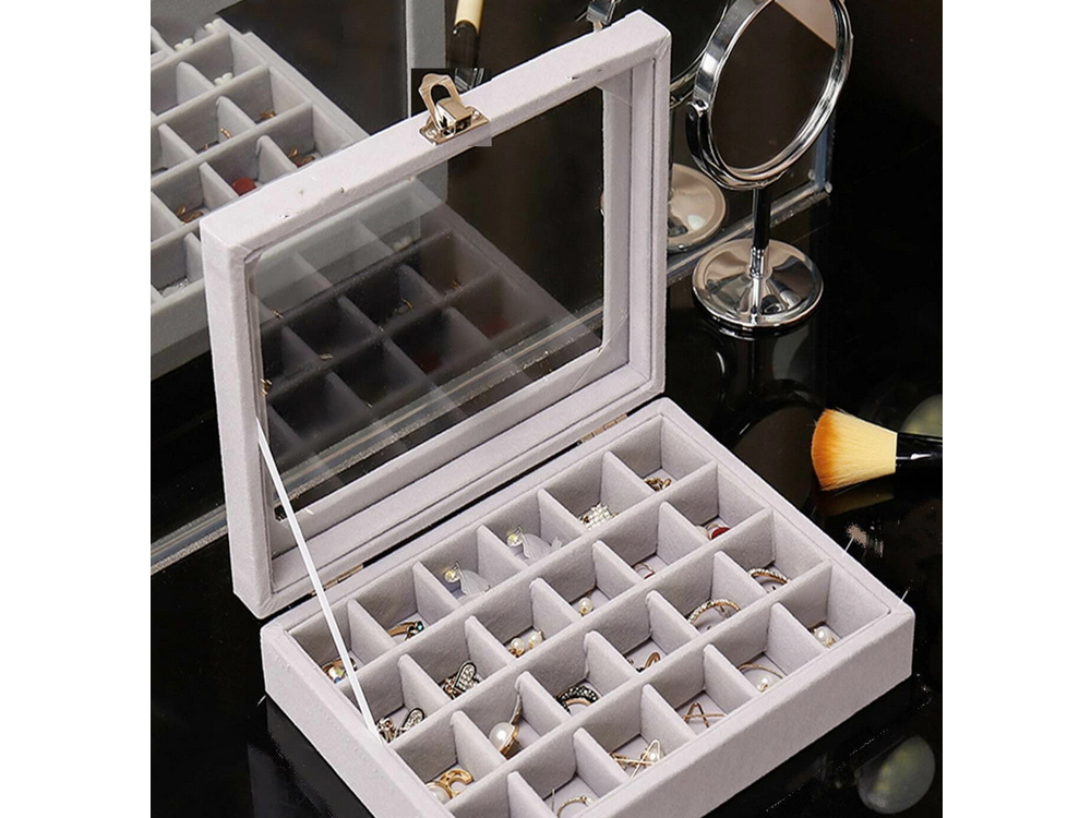 - 24 kohandatavat sektsiooni – mahutab sõrmused, ketid, kõrvarõngad ja käevõrud.