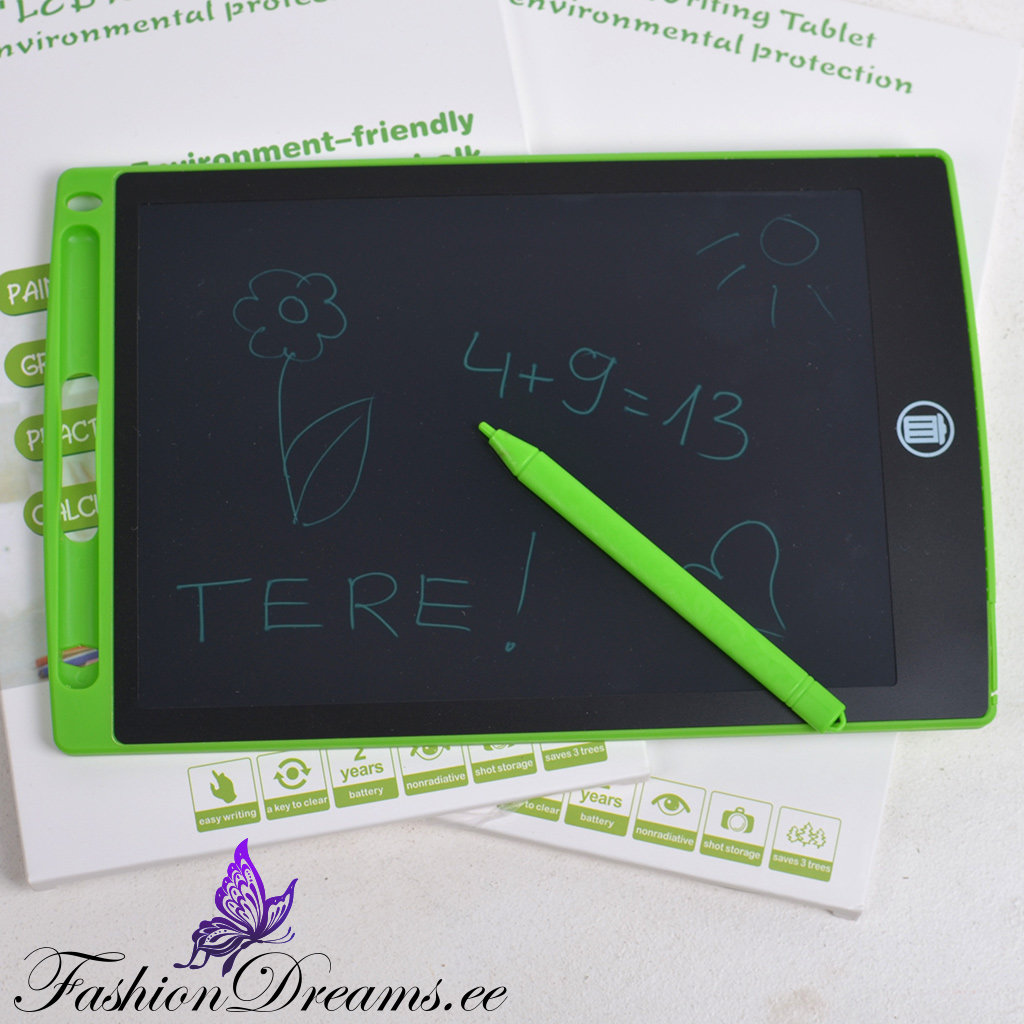 * Kaasasoleva pliiatsiga saab tahvlile joonistada või kirjutada ning seejärel nupuvajutusega kõik kustutada ning otsast alustada