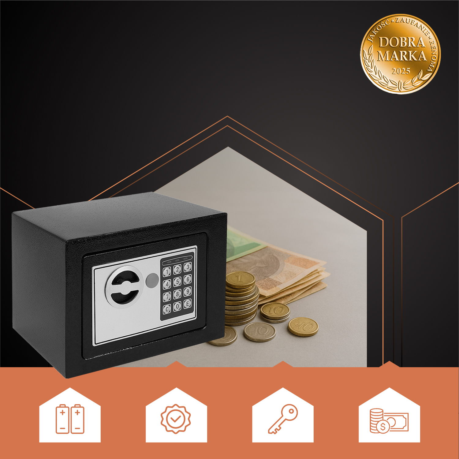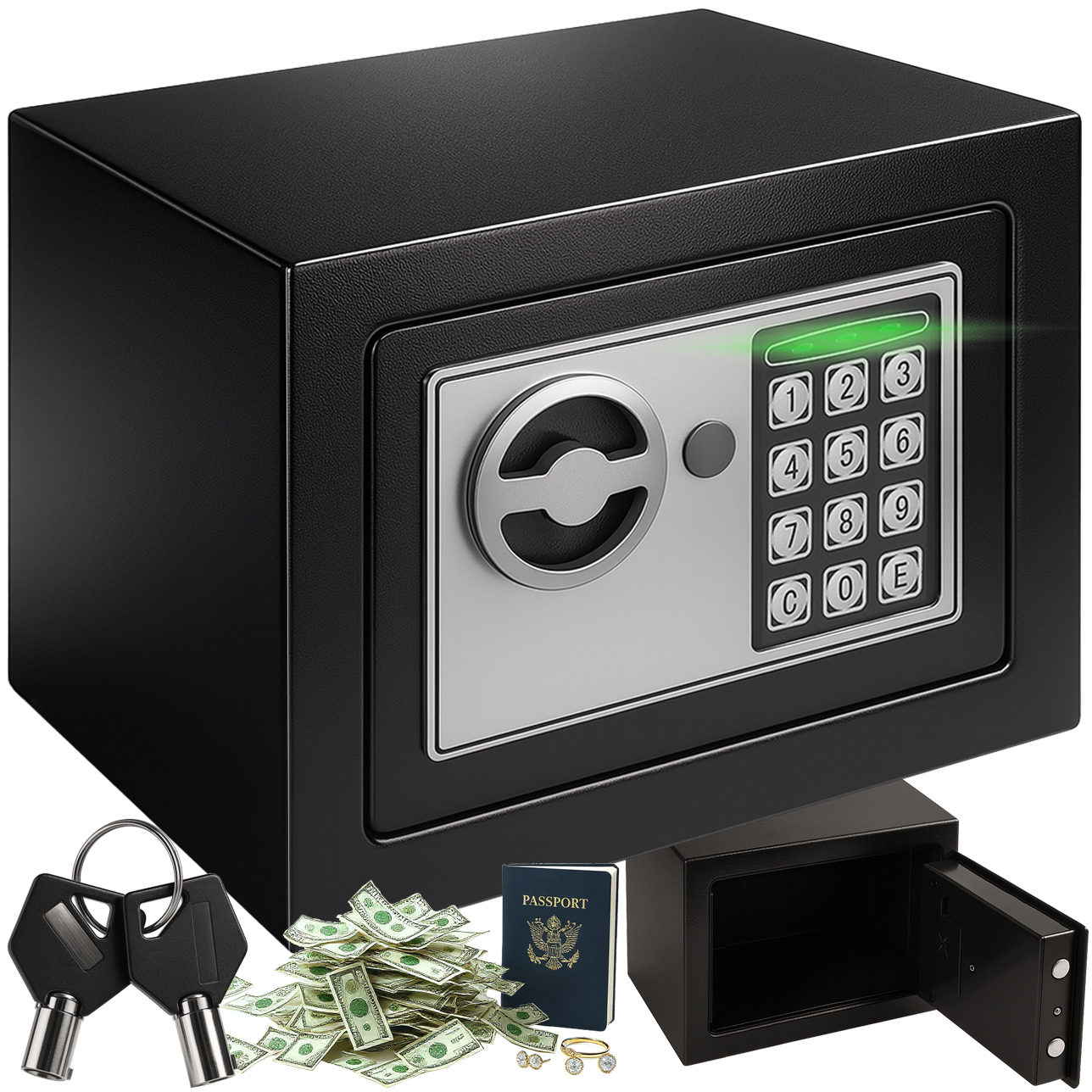 Turvalisus ja meelerahu on nüüd käeulatuses. Elektrooniline seif pakub kindlustunnet, et teie dokumendid, sularaha või ehted on kaitstud ning nendele pääseb ligi ainult teie valitud koodiga. Tänu kaasaegsele elektroonilisele lukule, häiresüsteemile ja avariivõtmele saate olla kindel, et isegi hädaolukorras säilib täielik kontroll.