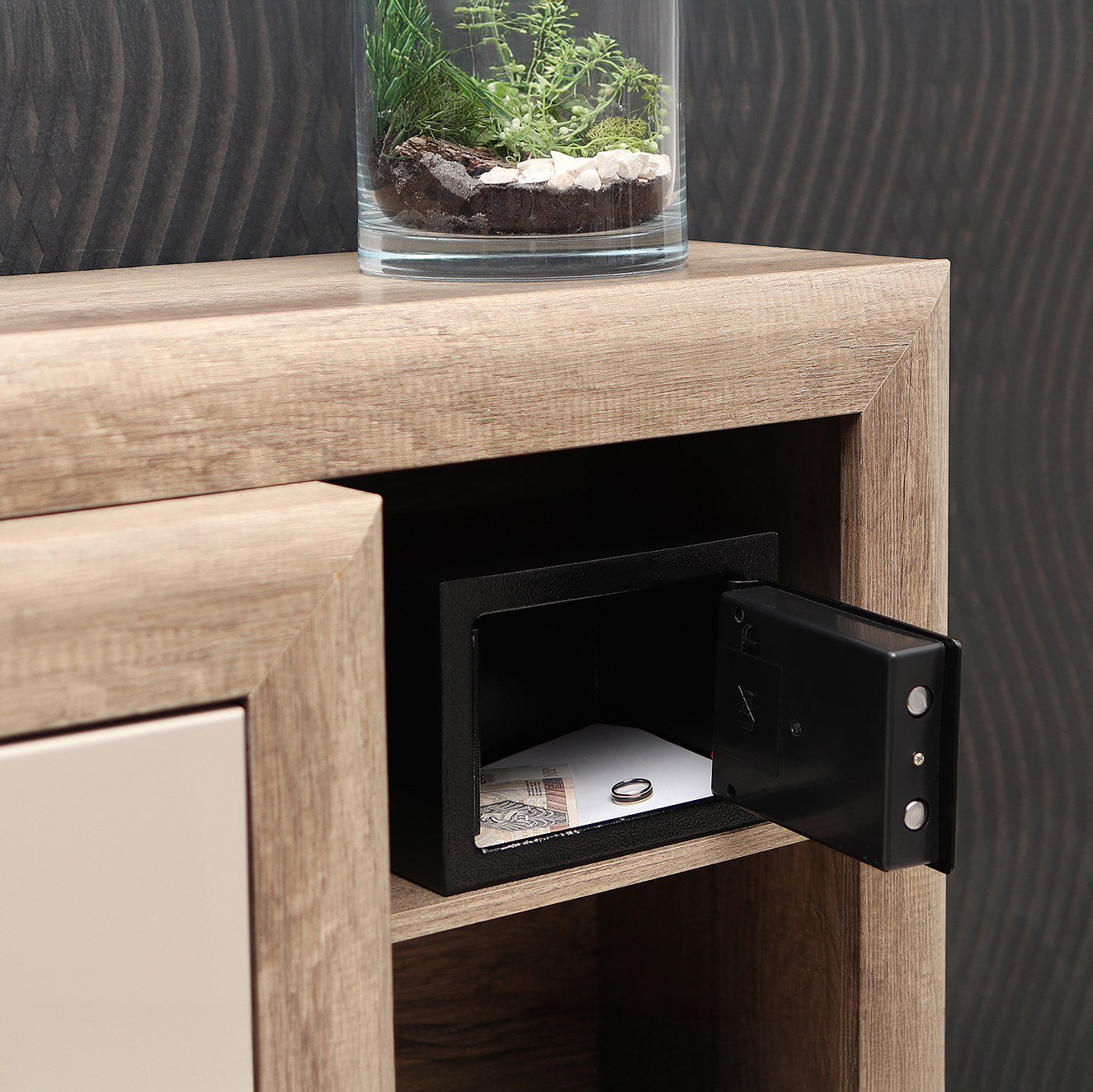 - Elektrooniline lukk: Kaasaegne elektrooniline lukk tagab lihtsa ja turvalise juurdepääsu teie väärtuslikele esemetele.