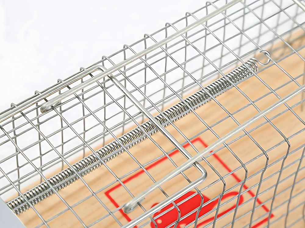 * Lõks on puidust alusel ja tugevast terastraadist võrguga, mis tagab stabiilsuse ja vastupidavuse.