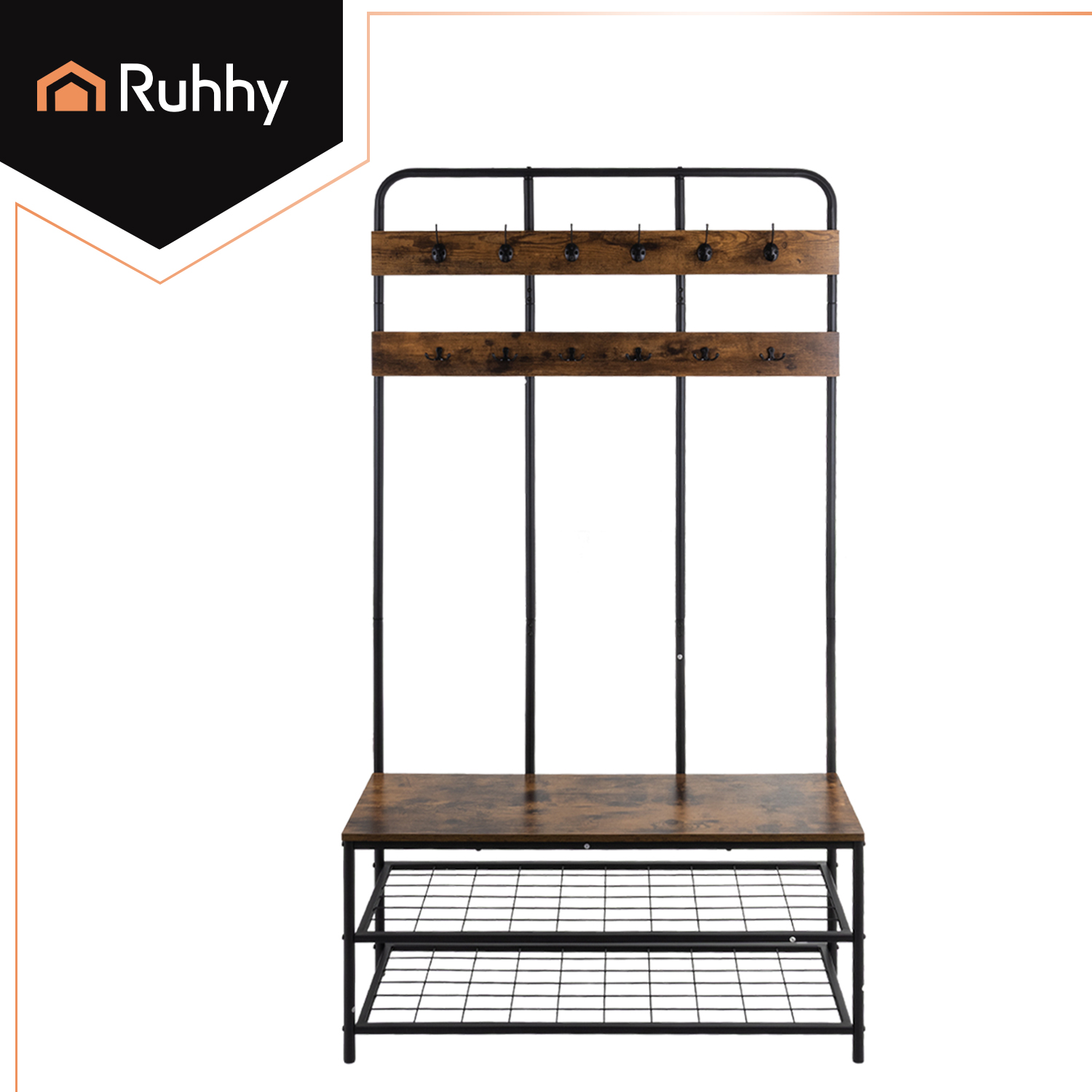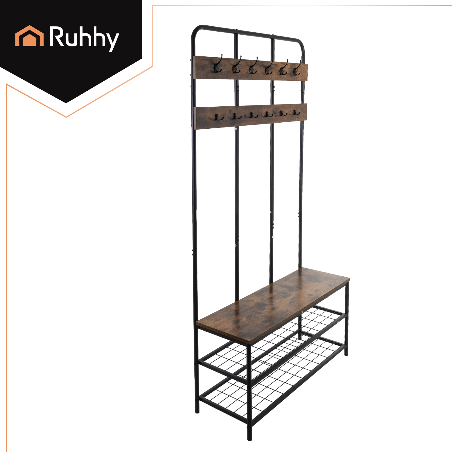 Praktiline 3-ühes lahendus esikusse ja garderoobi: ühes mööbliesemes on nii riidenagi, jalanõuriiulid kui ka istumispink, mis aitab säästa ruumi ning hoida korda.