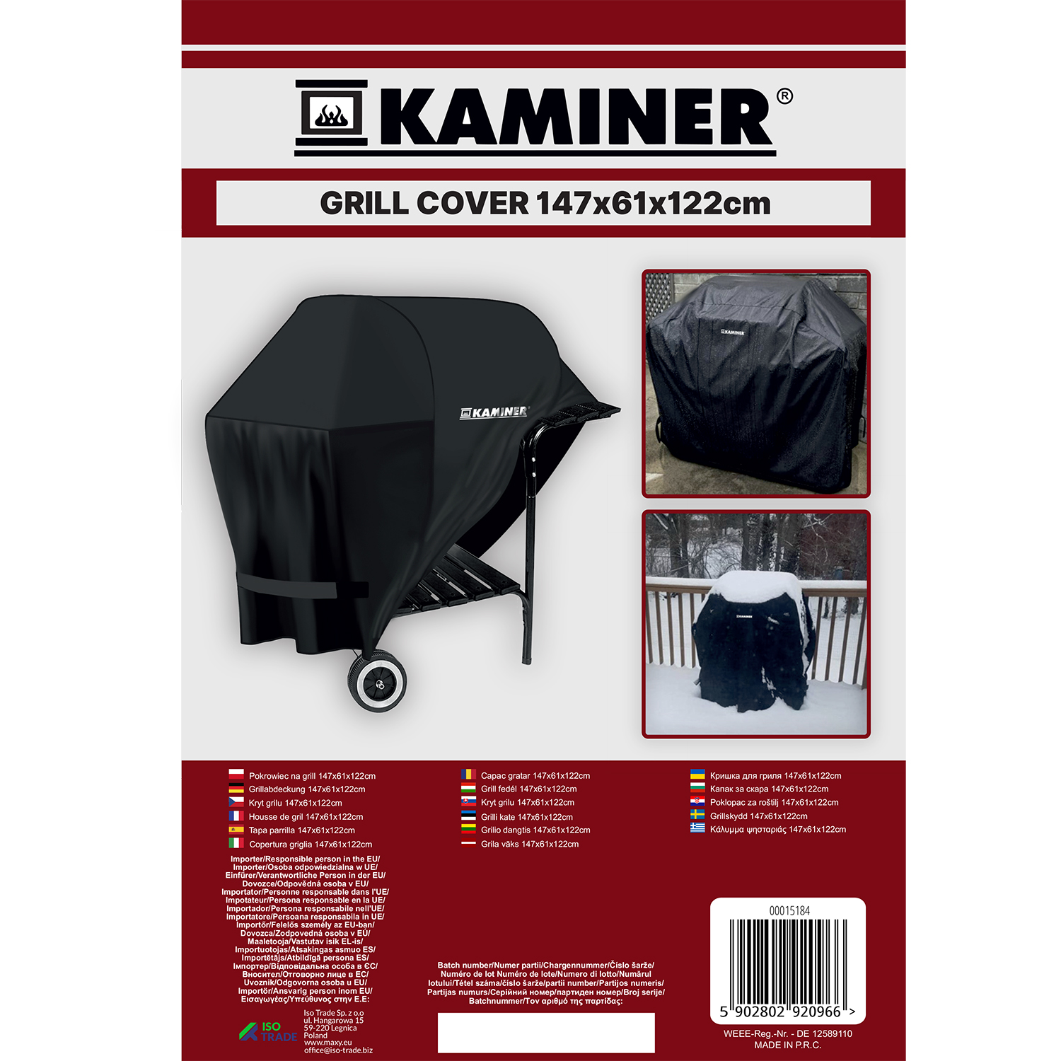 * Universaalne grillikate, mis sobib enamikele pikliku kujuga söe- ja gaasigrillidele, sh ka suurematele ning külgmiste töölaudadega mudelitele. Samuti saab kasutada ka muude esemete (nt aiamööbel, suuremad tööriistad, kärud jpm) katmiseks
