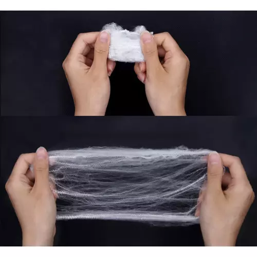 Tõmba ämblikuvõrk pakendist välja, venita soovitud tiheduse ja kujuga ning kinnita näiteks mööblile, ukseavadele, akendele, nurkadesse või taimedele. Soovi korral rebi võrku väiksemateks osadeks, et luua veelgi realistlikum ja “sassis” tulemus.