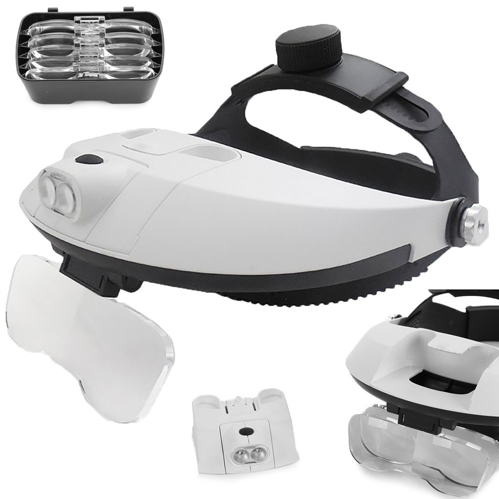 PROFESJONALNA LUPA NAGŁOWNA Z PODŚWIETLENIEM 2 LED ORAZ Z WYMIENNYMI SOCZEWKAMI 1x 1,5x 2x 2,5x 3,5x