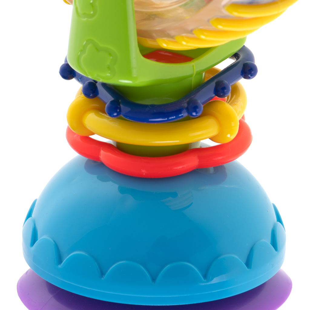 - Imav kinnitus stabiilseks mänguks – tugev iminapp hoiab mänguasja kindlalt siledal pinnal (nt laual, vanniseinal või söögitooli alusel), et see ei kukuks ega veereks mängu ajal minema.