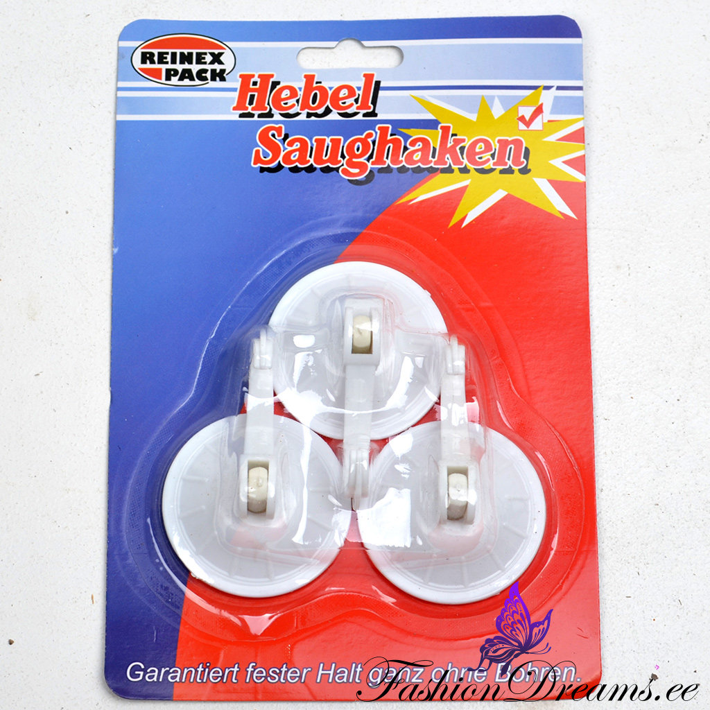 * Kasutamiseks tõsta konks üles, pane alus vastu siledat pinda ning vajuta konks alla – tekib vaakum ja konks jääb tugevalt kinni. Eemaldamiseks tõsta konks jälle üles ning see tuleb seina küljest lahti. Korduvkasutatav.