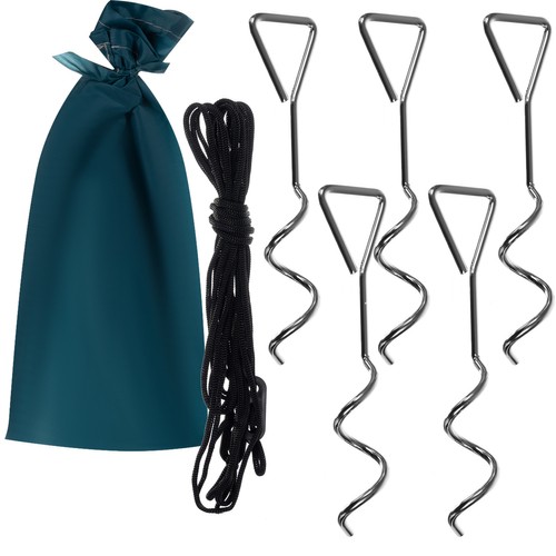 Pingutusnöörid ja vaiad komplektis – spetsiaalselt disainitud vaiad ja kinnitusnöörid hoiavad telgi kindlalt paigal ka tugevama tuule korral.