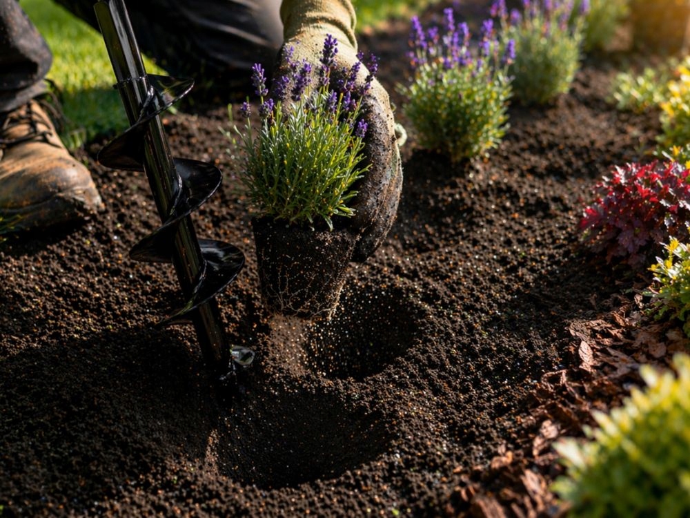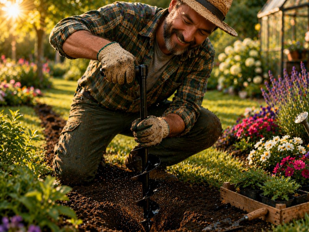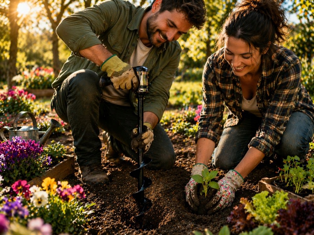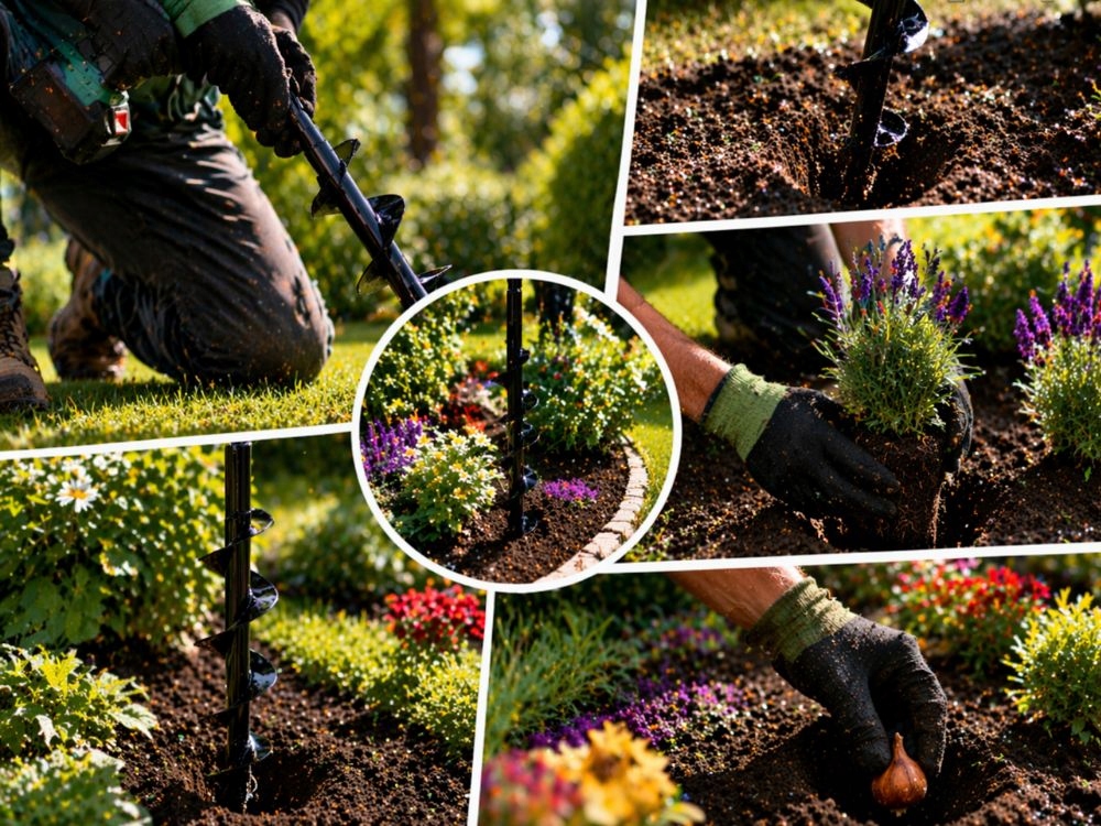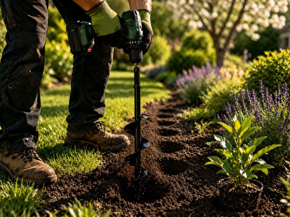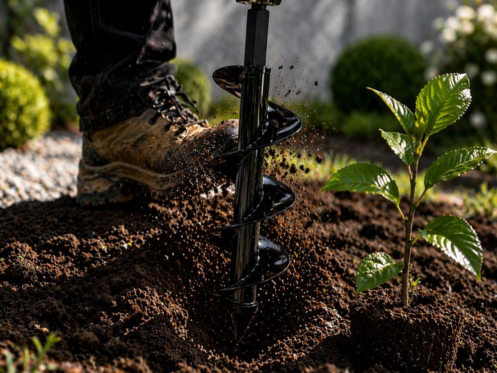 - Kiirem istutamine väiksema vaevaga – aitab teha mulda auke kiiremini kui labida või käsitööriistaga töötades.